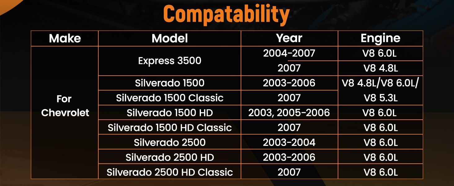 | For Chevrolet | Silverado 2500 HD | 8.1L 496Cu. In. V8 GAS OHV Naturally Aspirated | WT Standard Cab Pickup 2-Door | 2006 | V8 6.0L, 2003-06 Chevy Silverado 2500 HD Throttle Body Assembly |