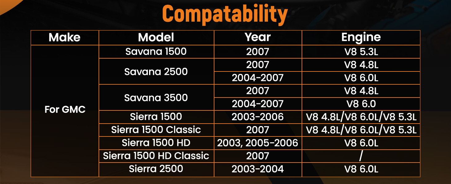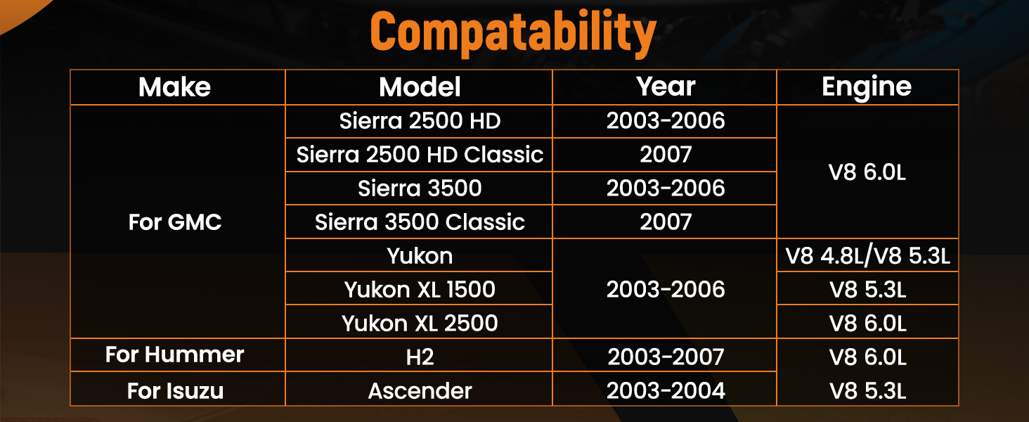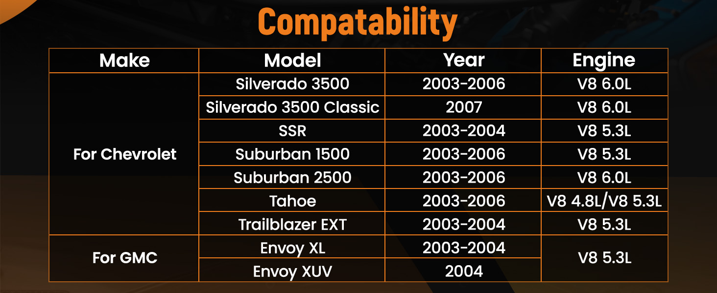 | For GMC | Sierra 2500 HD | 8.1L 496Cu. In. V8 GAS OHV Naturally Aspirated | WT Standard Cab Pickup 2-Door | 2004 | V8 6.0L, 2003-06 GMC Sierra 2500 HD Throttle Body Assembly |