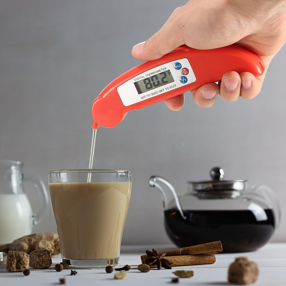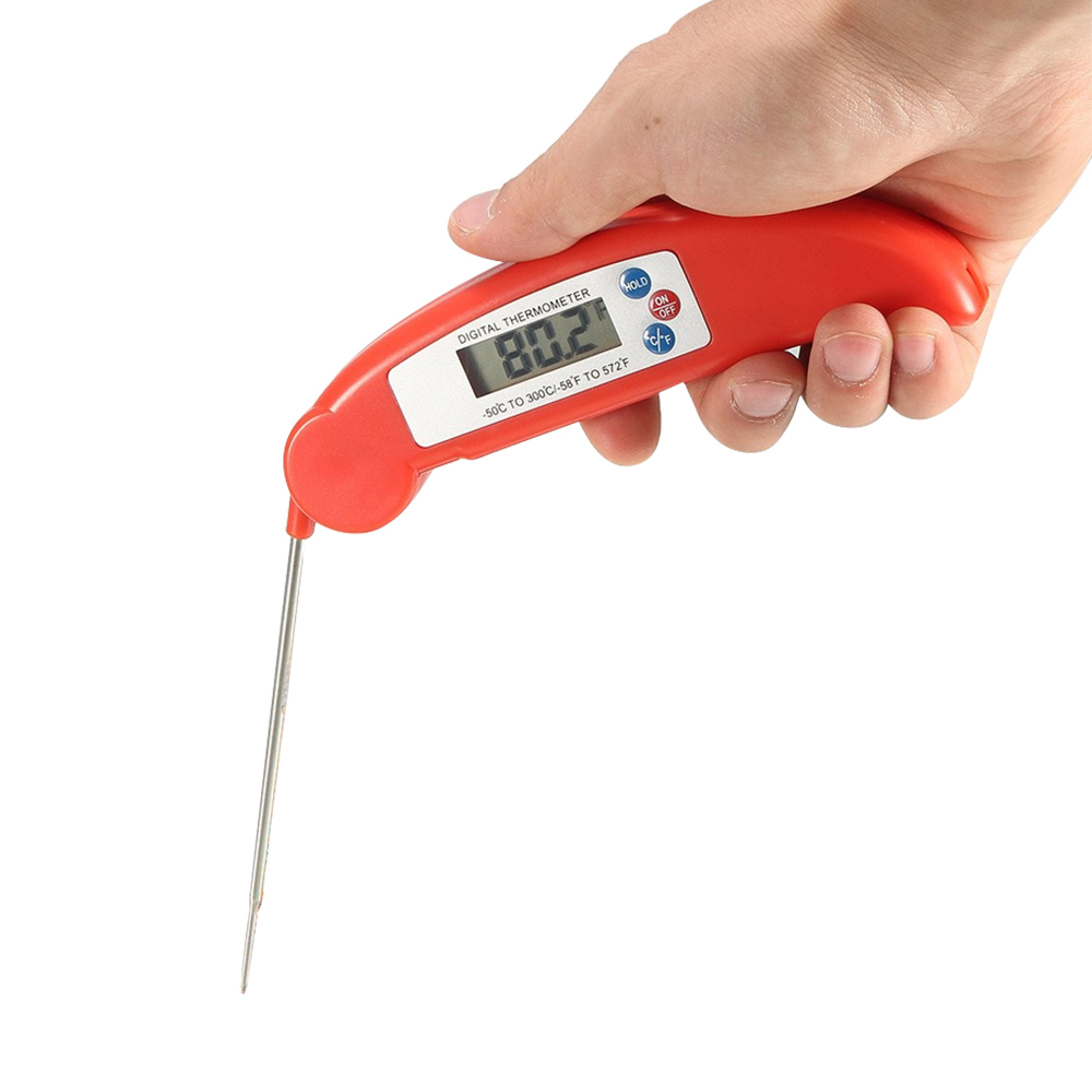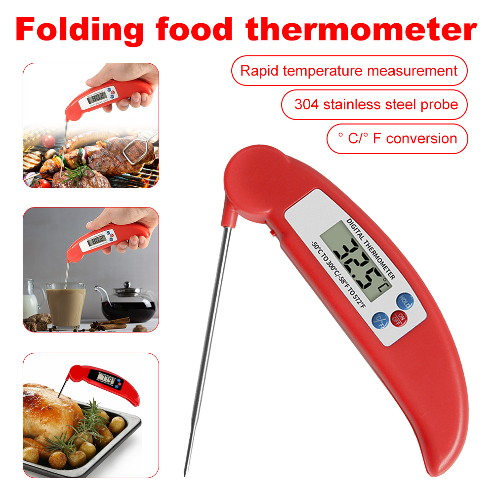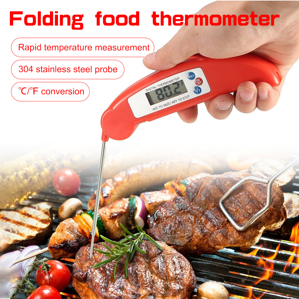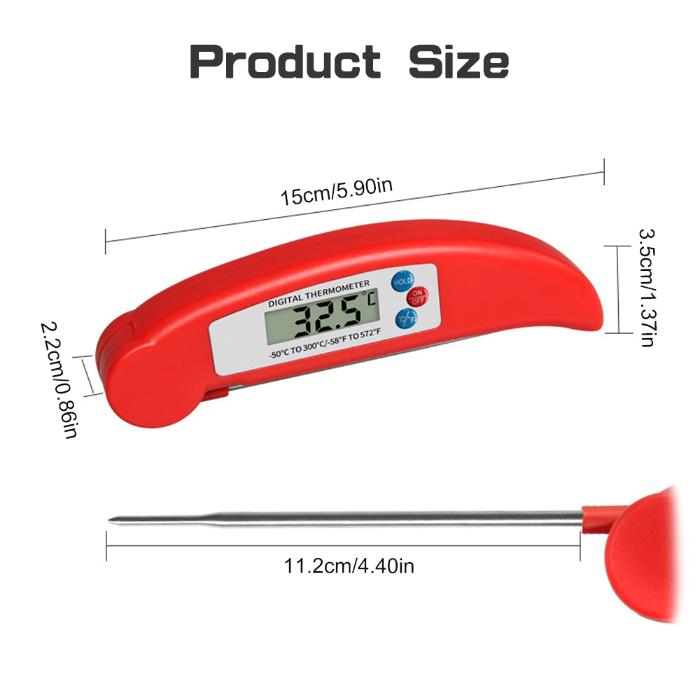 1. Accurate Measurement - Equipped with a foldable 4.4-inch food-grade stainless steel long probe, the thermometer only takes 5 seconds to measure the temperature with an accuracy of ±0.8°C (1.4℉) degrees and a wide range of -50°C~300°C (-58℉~572℉). The food thermometer is best for indoor/outdoor cooking, grilling, barbecue, etc.
