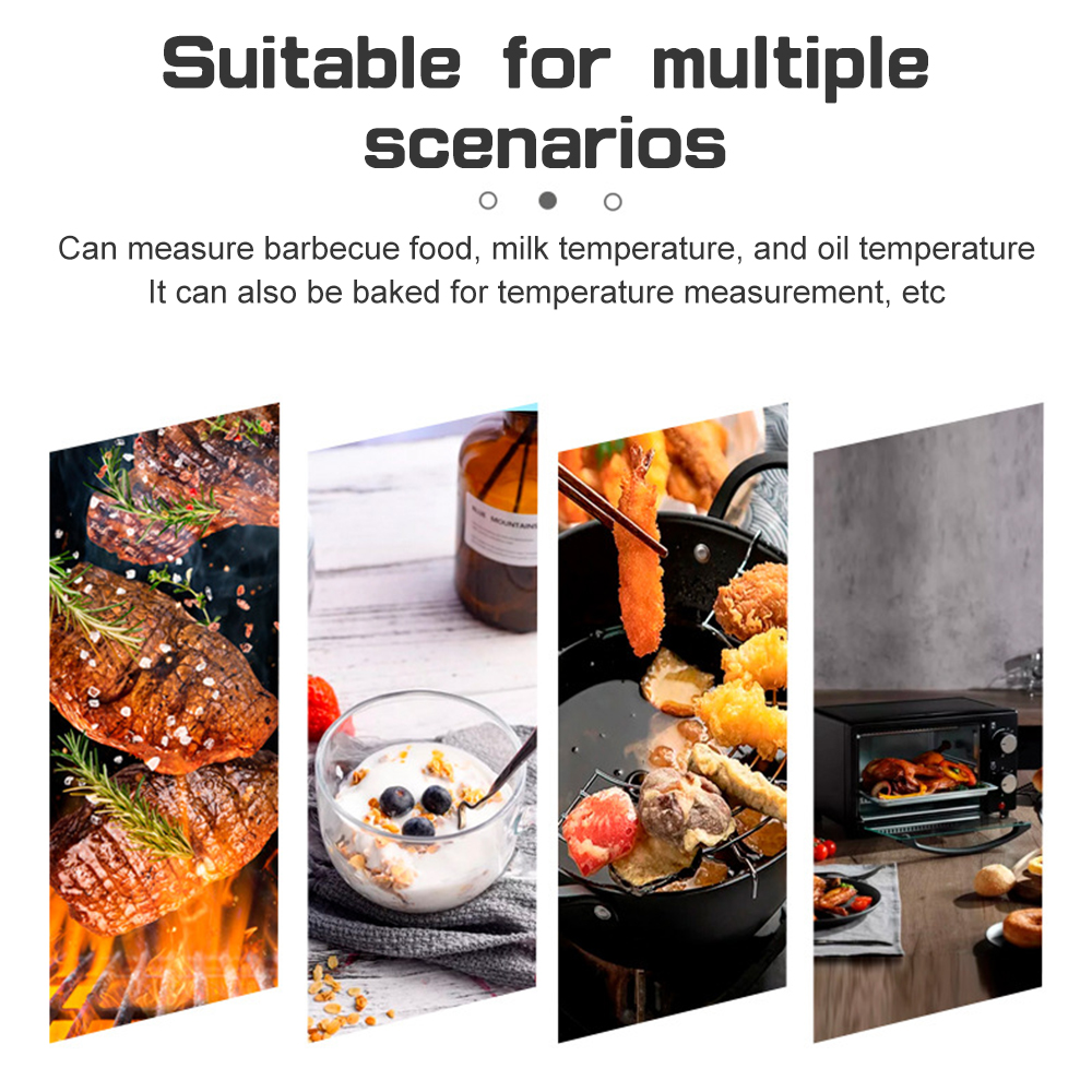3. Wide Applicability - The high-precision, reliable sensor can also withstand high temperatures up to 300°C (572°F) to get accurate meat temperature faster, the food thermometer is the best choice for indoor/outdoor cooking, grilling, barbecue, etc. No more leaning on the hot grill, it only takes seconds to get your food perfectly cooked.