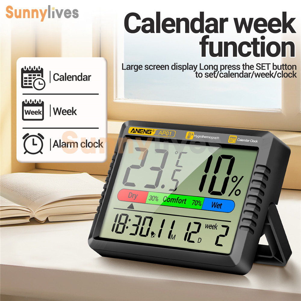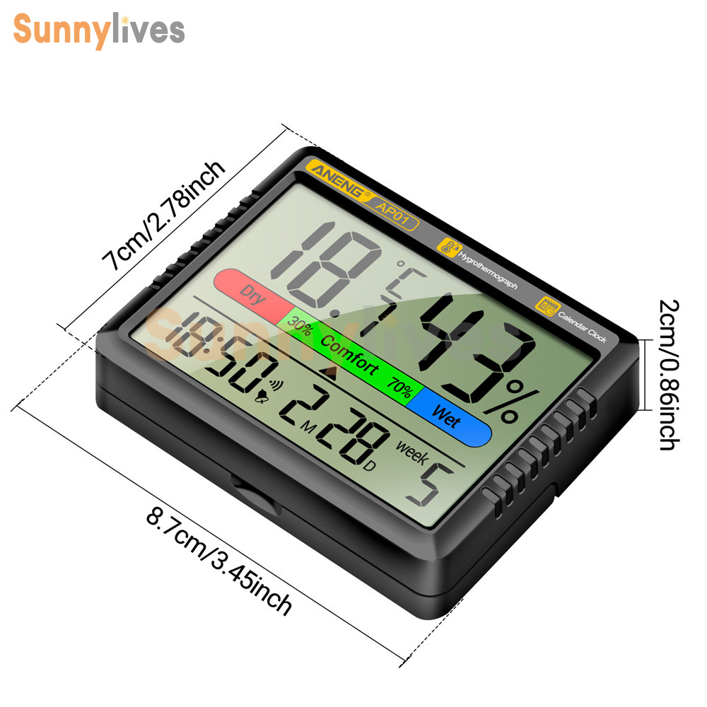 Features: 1. Accurate temperature monitoring: -10 to 50℃ wide range temperature monitoring, accuracy ±1℃, to ensure that the environment temperature is accurately mastered. 2. Fast humidity detection: 10% to 99% humidity measurement, updated every 10 seconds, fast response to environmental changes. 3. long-lasting battery use: powered by 2 AAA batteries, low power consumption design, suitable for long time outdoor or indoor use. 4. Intuitive LCD Display: Clearly displays temperature and humidity data, easy to read even in low-light environments. 5. Intelligent High and Low Temperature Alert: Temperature out of the set range automatically displays LLL or HHH to remind the abnormal situation in time.