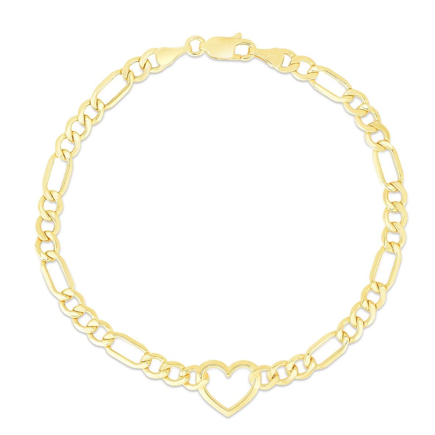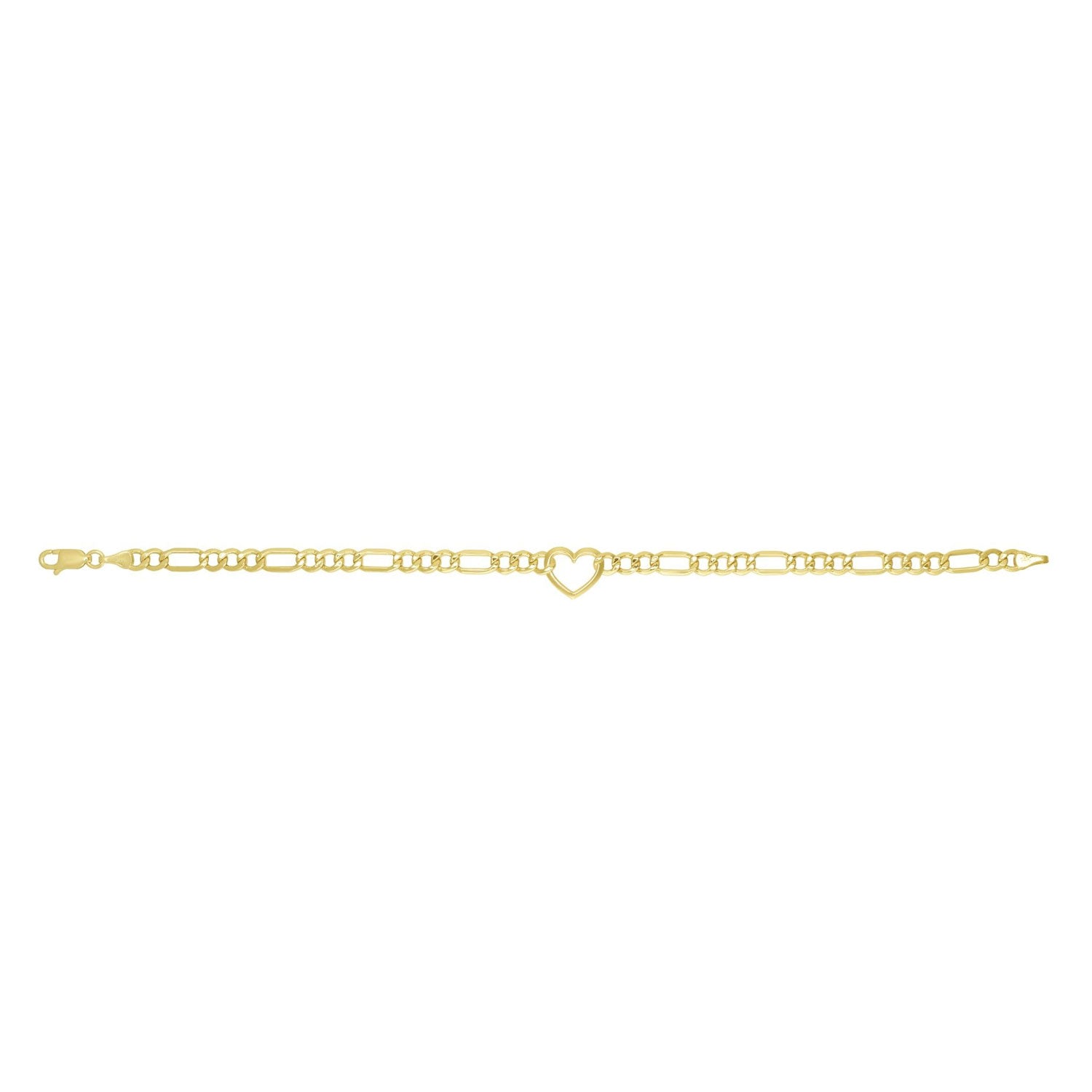 The JewelStop 10K Yellow Gold Heart Figaro Chain Bracelet is a stylish and romantic piece of jewelry that combines elegance with a timeless design. This bracelet features a polished finish with alternating Figaro links and heart-shaped accents, creating a delicate yet striking look. Crafted from high-quality 10K yellow gold, it measures 7 inches in length, making it ideal for a comfortable and secure fit. Finished with a durable lobster clasp, this bracelet is perfect for daily wear or special occasions, making it a thoughtful gift for someone special.