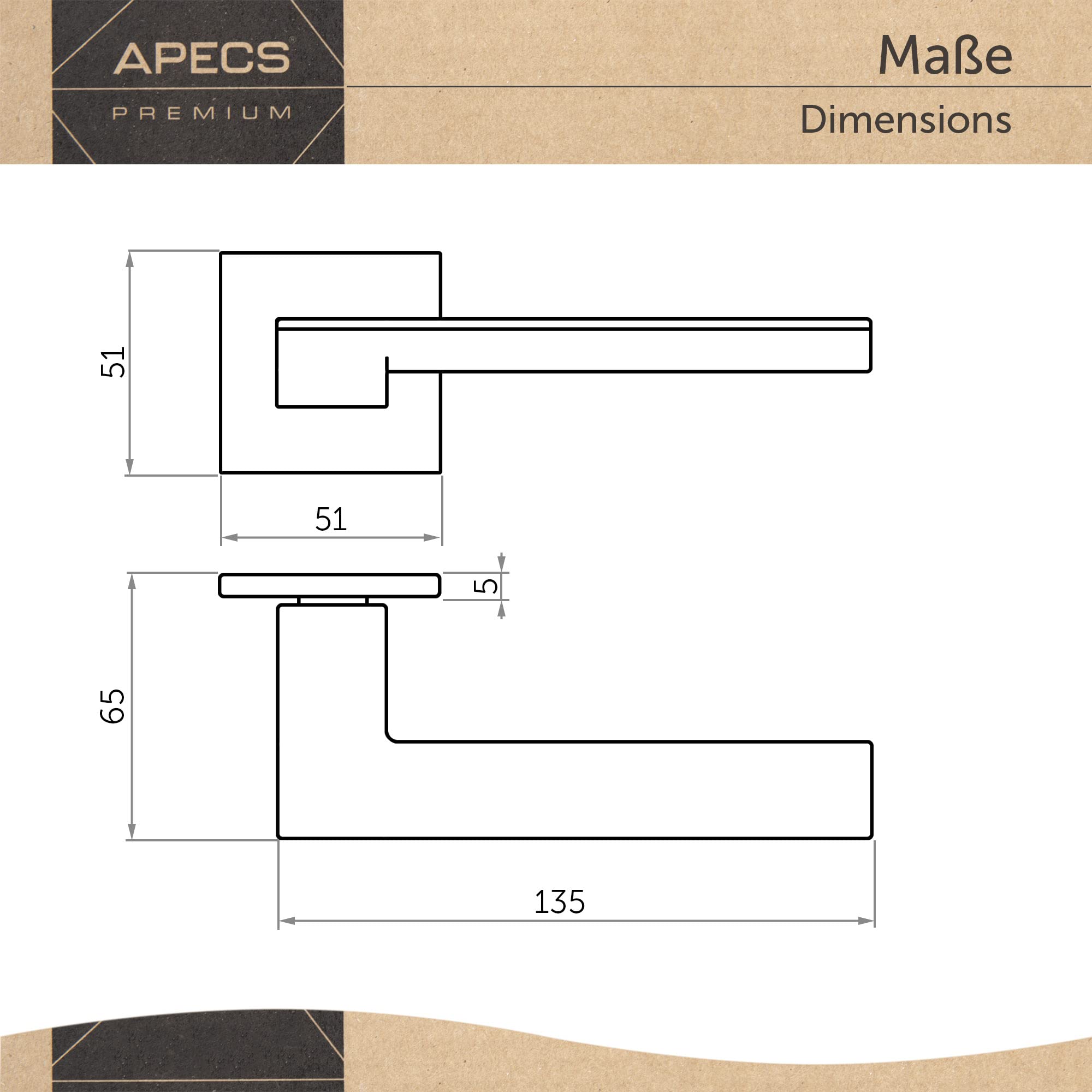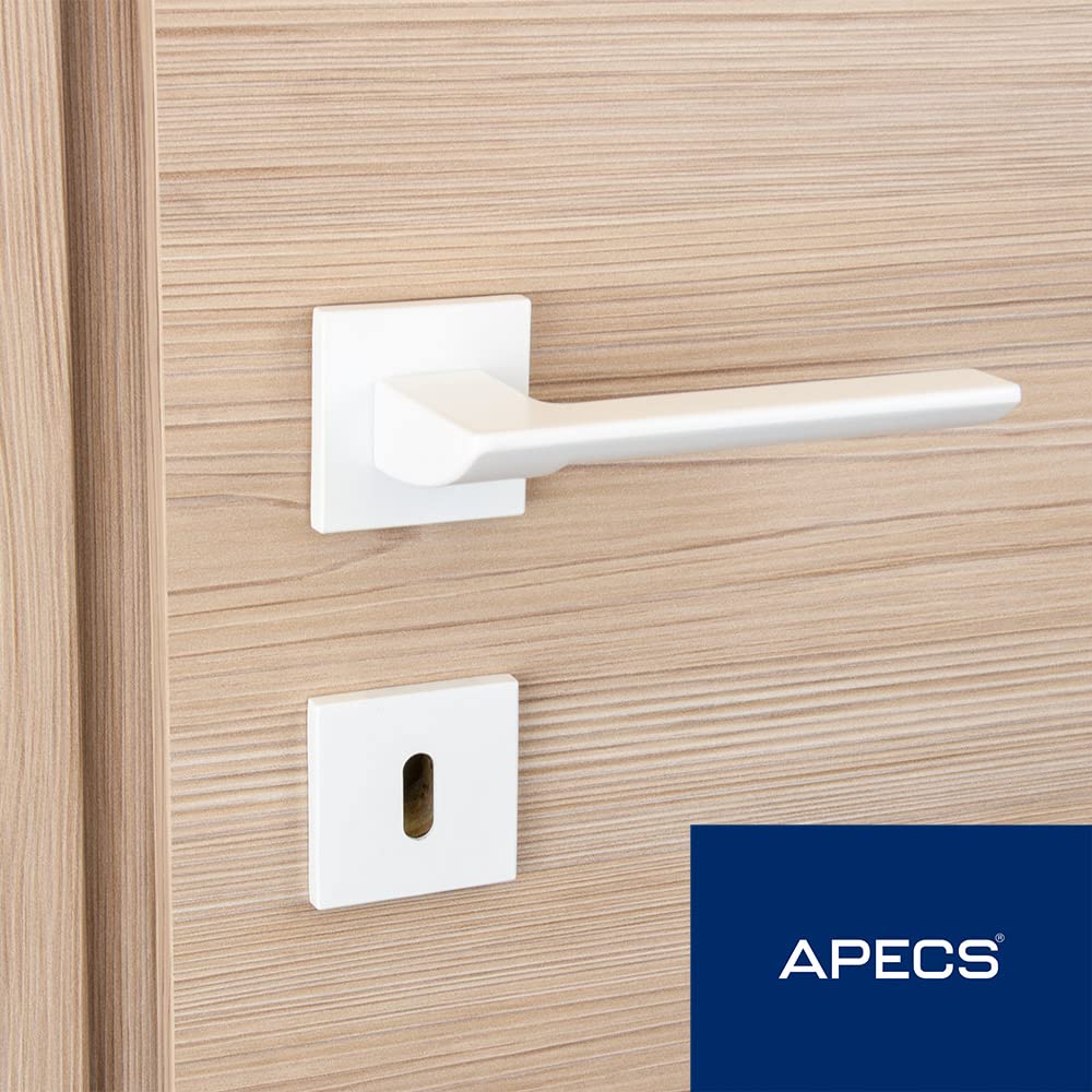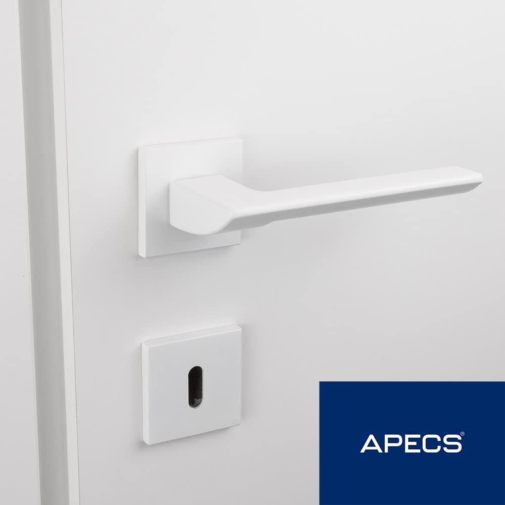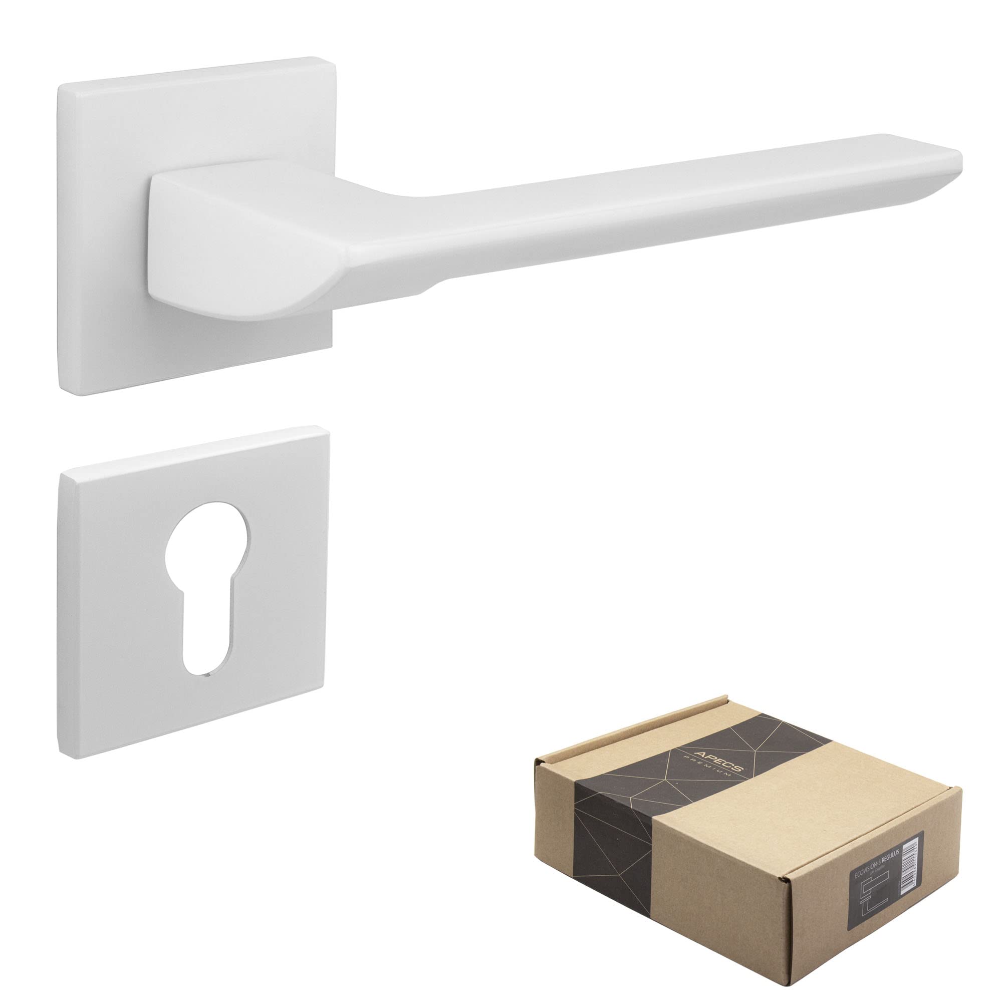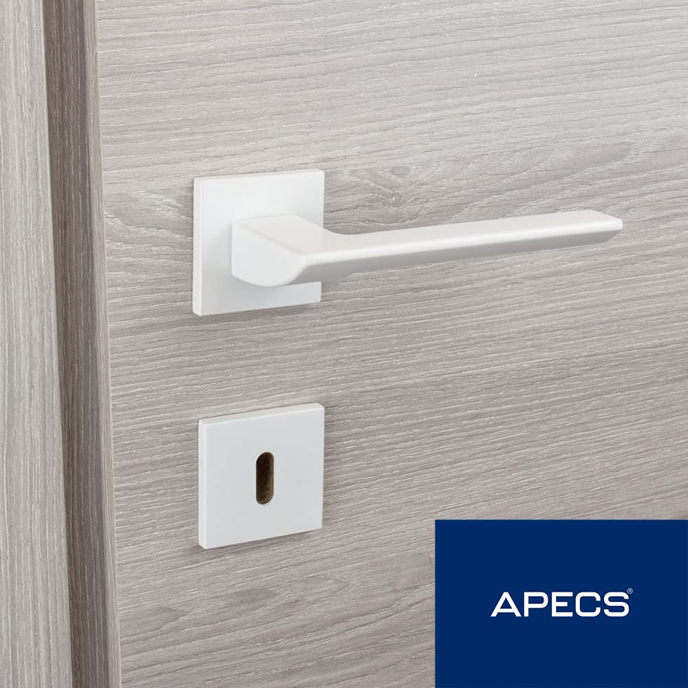 APECS Maniglie per porte interne moderne, maniglia per porta bianca opaca con rosetta quadrata, guarnitura con materiale di fissaggio, accessorio per porta modello ELECTRA PZ - Professio
