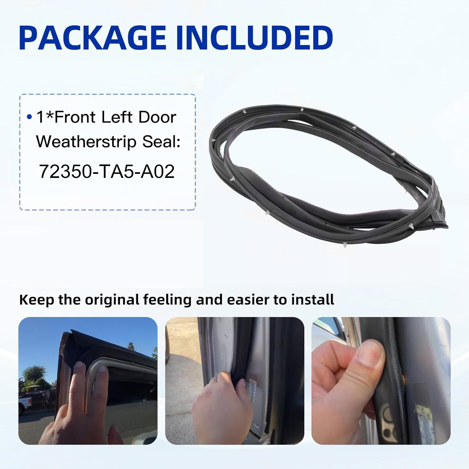 • PACKAGE INCLUDED - 1 x Front Left Door Weatherstrip Seal: 72350-TA5-A02,72350-TA0-A01,72350-TA5-A01.
