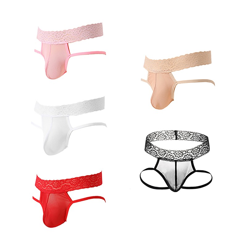 Mens See-Through Lace Briefs Bowknot Strappy Crotchless Underpants.