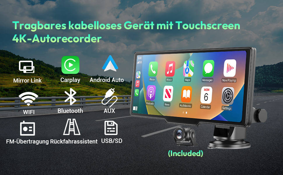 | 🚘Wireless Apple CarPlay und Android Auto: Diese Dashcam, speziell für die Verbindung mit Smartphones entwickelt, ermöglicht drahtloses Apple CarPlay und Android Auto, indem Sie Ihr Telefon einfach über Bluetooth mit dem XGODY H26PRO verbinden. Es erkennt Ihr Smartphone automatisch nach dem ersten erfolgreichen Anschluss. Nutzen Sie die Sprachsteuerung oder den Touchscreen, um auf Funktionen wie Musik, Navigation, Sprach-E-Mails, Anrufe, Benachrichtigungen und Nachrichten zuzugreifen – CarPlay ist eine sicherere Art der Smartphone-Nutzung im Auto. 🚚4K-Frontkamera + 1080P-Rückkamera: Diese Dual-Dashcam ist mit einer 4K-Auflösung für die Frontkamera und einer wasserdichten 1080P-Rückkamera ausgestattet. Die Dashcam bietet Vollfarb-HD-Kameras und einen weiten dynamischen Bereich. Die Frontkamera erfasst nachts klar und gleichmäßig Nummernschilder und Verkehrsschilder, um Ihnen die besten Aufnahmen zu bieten. Mit einem Blickwinkel von 170° vorne und 160° hinten werden tote Winkel eliminiert. 🚗Grundlegende Funktionen: Die Dashcam verfügt über einen Parkmodus, der automatisch aktiviert wird und Videos aufzeichnet, wenn Ihr Auto erschüttert wird oder angegriffen wird. Unterstützt 24-Stunden-Parküberwachung und Zeitraffermodus mit dem XGODY Hardwire Kit (nicht im Lieferumfang enthalten). Startet automatisch die Loop-Aufzeichnung mit Fahrzeugstart und überschreibt ältere Videos nahtlos, ohne dass häufig Speicherkarten gewechselt werden müssen. Bei einem Aufprall, der den G-Sensor aktiviert, zeichnet die Kamera 20 Sekunden Video auf und sperrt es. 🚙Bluetooth 5.0 & AUX & FM-Übertragung: Die Version 5.0 ermöglicht klarere und stabilere Anrufe und Klangqualität. Mit eingebautem Mikrofon können Sie Anrufe entgegennehmen und Musik kabellos über Bluetooth abspielen. Unterstützt FM- und AUX-Kabelverbindung zum Autoradio (stellen Sie FM auf einen freien Kanal ein, um Störungen zu vermeiden; diese Funktion erfordert das Original-Ladegerät). Das Produkt verfügt über einen kleinen Lautsprecher und kann eigenständig Ton abspielen. 🚌Automatischer Rückwärtsassistent: Im Rückwärtsgang zeigt der Dashcam-Bildschirm automatisch eine vollständige Rückansicht mit Parkführungslinien an. Die wasserdichte Rückfahrkamera hilft Ihnen beim sicheren und einfachen Parken. Beachten Sie: Die rote Leitung muss mit dem Rücklicht verbunden sein, um als Rückfahrkamera zu fungieren. 🚕Kompatibel mit 99% der Fahrzeuge: Im Vergleich zu den üblichen 12V-Einstellungen für Apple CarPlay Navigation beträgt die Betriebsspannung dieses nicht eingebetteten Autoradios mit Navigation 12-36V, sodass es für Autos und Lastwagen geeignet ist. Autoradios mit Bildschirm sind für die meisten Fahrzeuge wie Limousinen, Lastwagen, Lieferwagen, Busse und Pick-ups geeignet. | |||