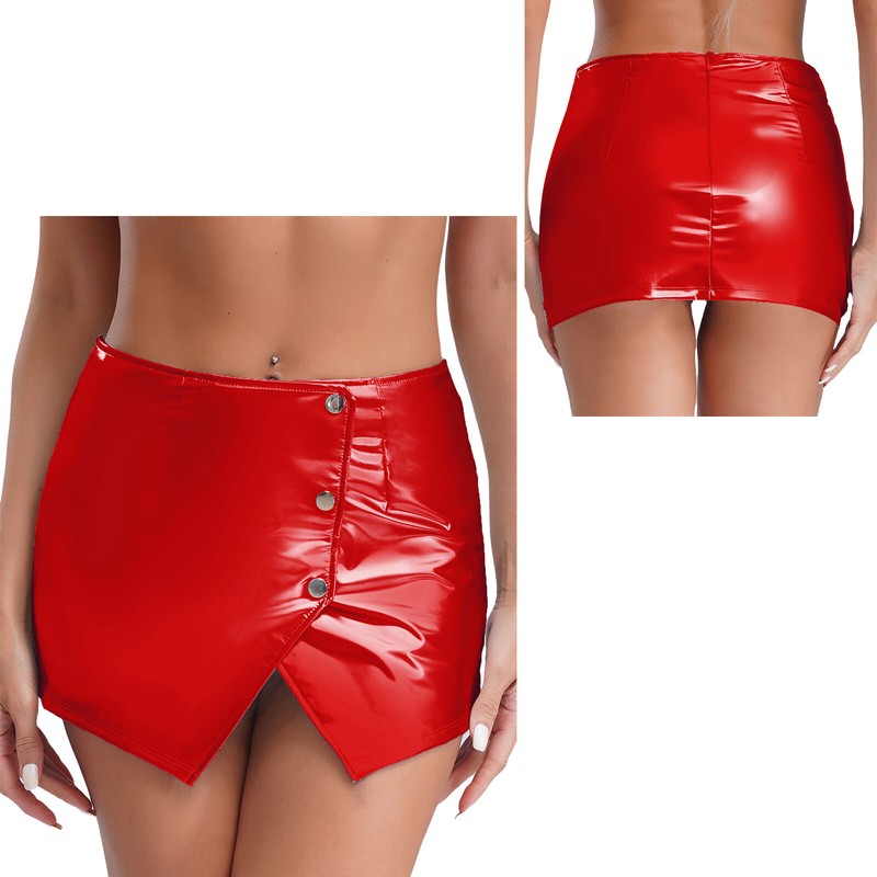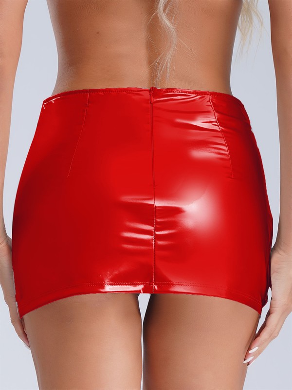 Hochglänzender, einfarbiger, hoher Taillenumfang Minirock mit elastischem Bund für bequemen Sitz.