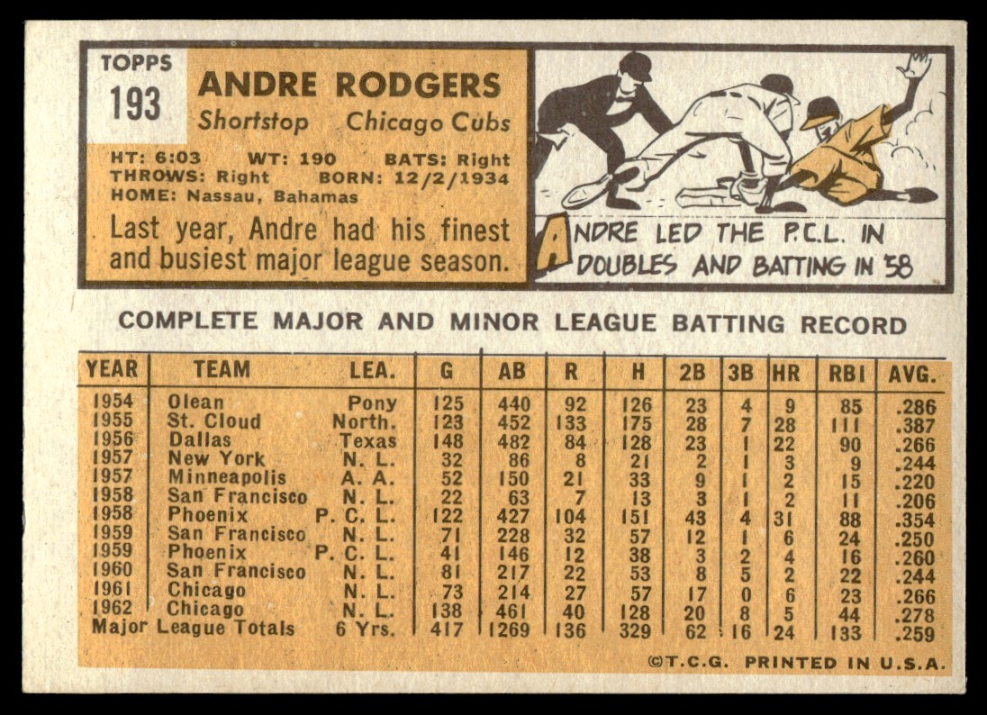 | 1963 Topps Andre Rodgers Chicago Cubs #193 | ||||||||||||||||