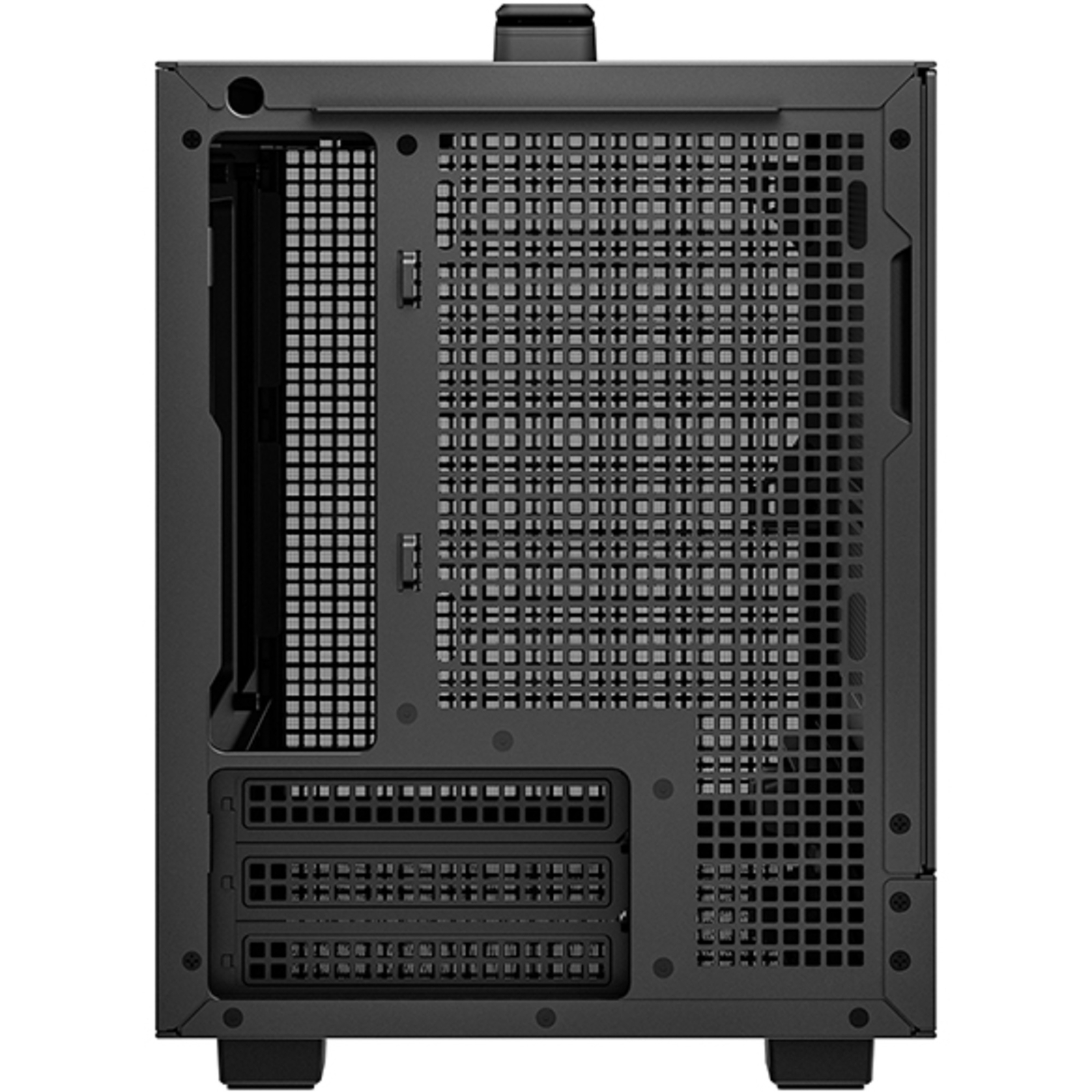 Das CH160 MESH ist ein ultrakompaktes mITX-Gehäuse, das alle Merkmale eines DeepCool-Gehäuses mit hoher Luftzirkulation aufweist, aber eine kleine Grundfläche hat. Die neue Mesh-Konfiguration ermöglicht jetzt die Option, ein 240-mm-AIO hinzuzufügen. Das interne Layout bietet viel Platz für Laufwerke und Netzteiloptionen. Fehlende Unterstützung für Luftkühler in kleinen mITX-Gehäusen gehört der Vergangenheit an. Das CH160 MESH kann riesige Luftkühler mit einer Höhe von bis zu 172 mm aufnehmen. Das CH160 MESH ist für die meisten 3-Slot-Grafikkarten mit zwei Lüftern ausgelegt, die kürzer als 305 mm sind und direkt in das Motherboard eingesetzt werden können, ohne dass ein Riser-Kabel benötigt wird - ohne zusätzliche Grafikakrten-Latenz. Ausgestattet mit Optionen wie abnehmbaren Lüfterhalterungen, wobei die vordere Lüfterhalterung sowohl für ein SSD- als auch für ein HDD-Laufwerk verwendet werden kann, drei abnehmbaren Staubfiltern für eine einfache Reinigung, einem schönen und stabilen Tragegriff, zwei USB 3.0-, einem Typ-C- und einem Hybrid-Audio-Anschluss macht das CH160 MESH alles ein bisschen einfacher.