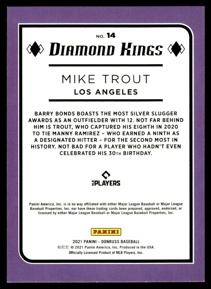 | 2021 Donruss Purple Mike Trout Los Angeles Angels #14 | ||||||||||||||||