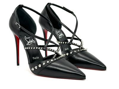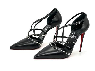 - Christian Louboutin Tatooshka leather pumps sandals with silvertone spike studs