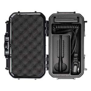 Custom designed carrying/storage case for the Kenwood TH-D74 & TH-D75 portable/handheld radios. The Kenwood TH-D74/D75 are feature packed, ultra compact, handheld radio that deserve a safe and secure way to transport and store! This setup provides a waterproof, lockable, storage solution with dedicated locations for accessories such as the stock antenna, spare battery, hand speaker/mic and more! Note: Radio and all accessories are NOT included and are shown for illustrative purposes only. |