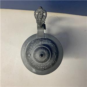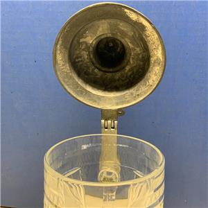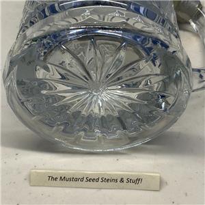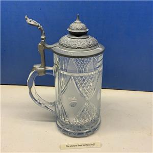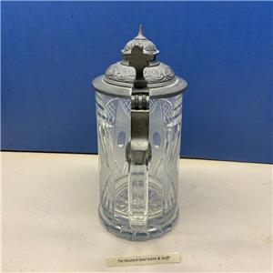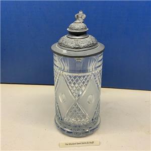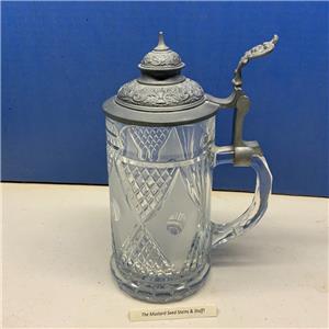 This is the Vintage Diamond Pattern Cut Glass Pewter Lidded Stein! This measures about 8 1/2" to the top of the lid and 3 1/2" at the base! This is surprisingly heavy. Handle is clear with no air bubbles.