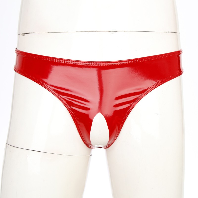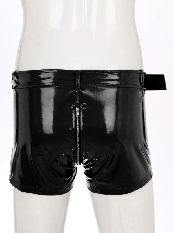 Patent leather with wet look brings endless temptation and sexiness. Slim fit underwear enhances masculine contour.