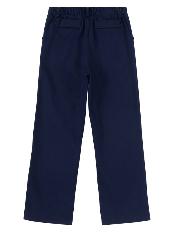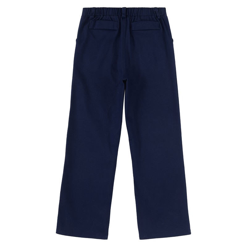 Elastic waistband with belt rings, two side pockets and two faux pockets at back.