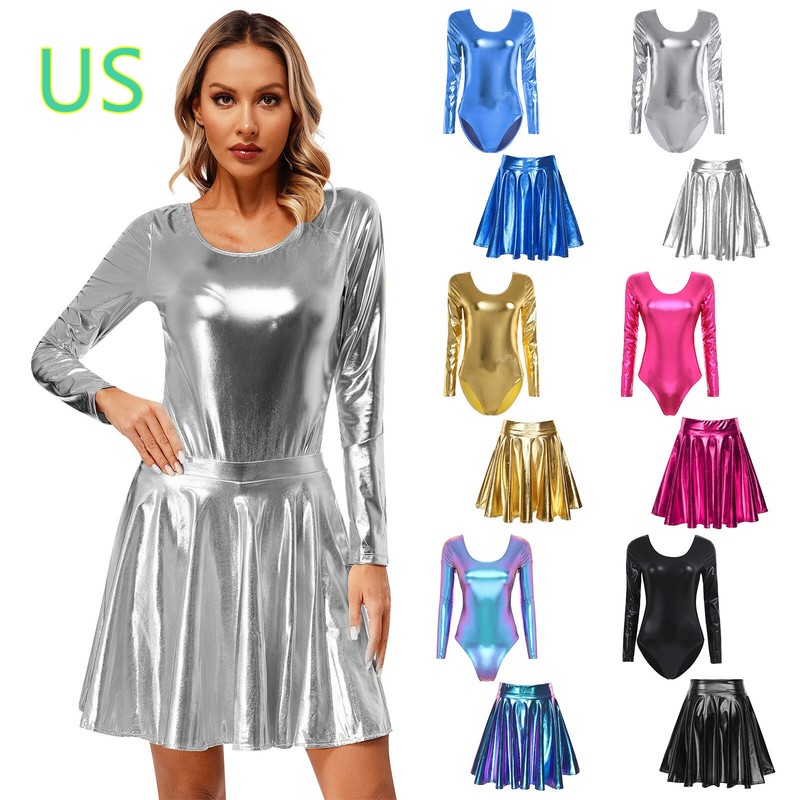 US-Women' Cheer Leader Costume Uniform Cheerleading Crop Top +Pleated Mini Skirt