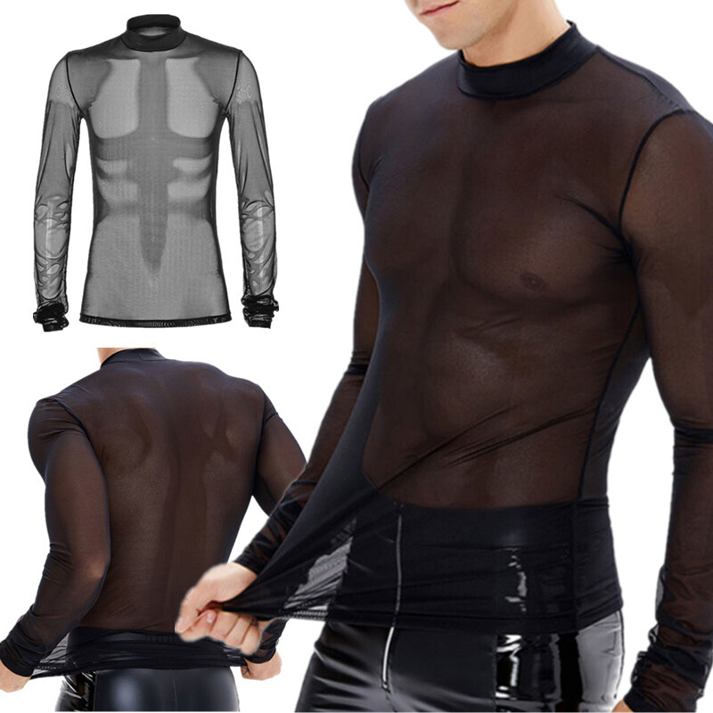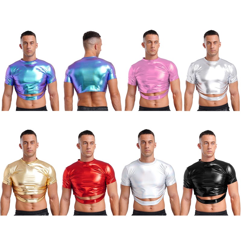 Mens Open Front Crop Top Half Shirts Solid Color Long Sleeve Tops Arm Sleeves