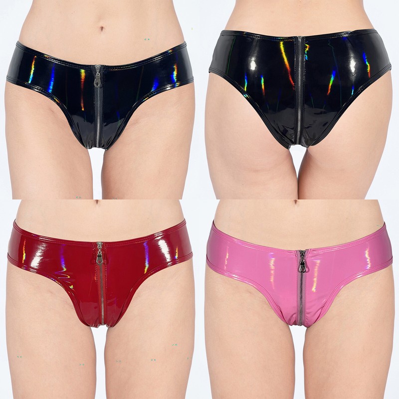 Sexy Womens Glossy Sheer Panties Zipper Crotch Stretchy Briefs Thongs Underwear