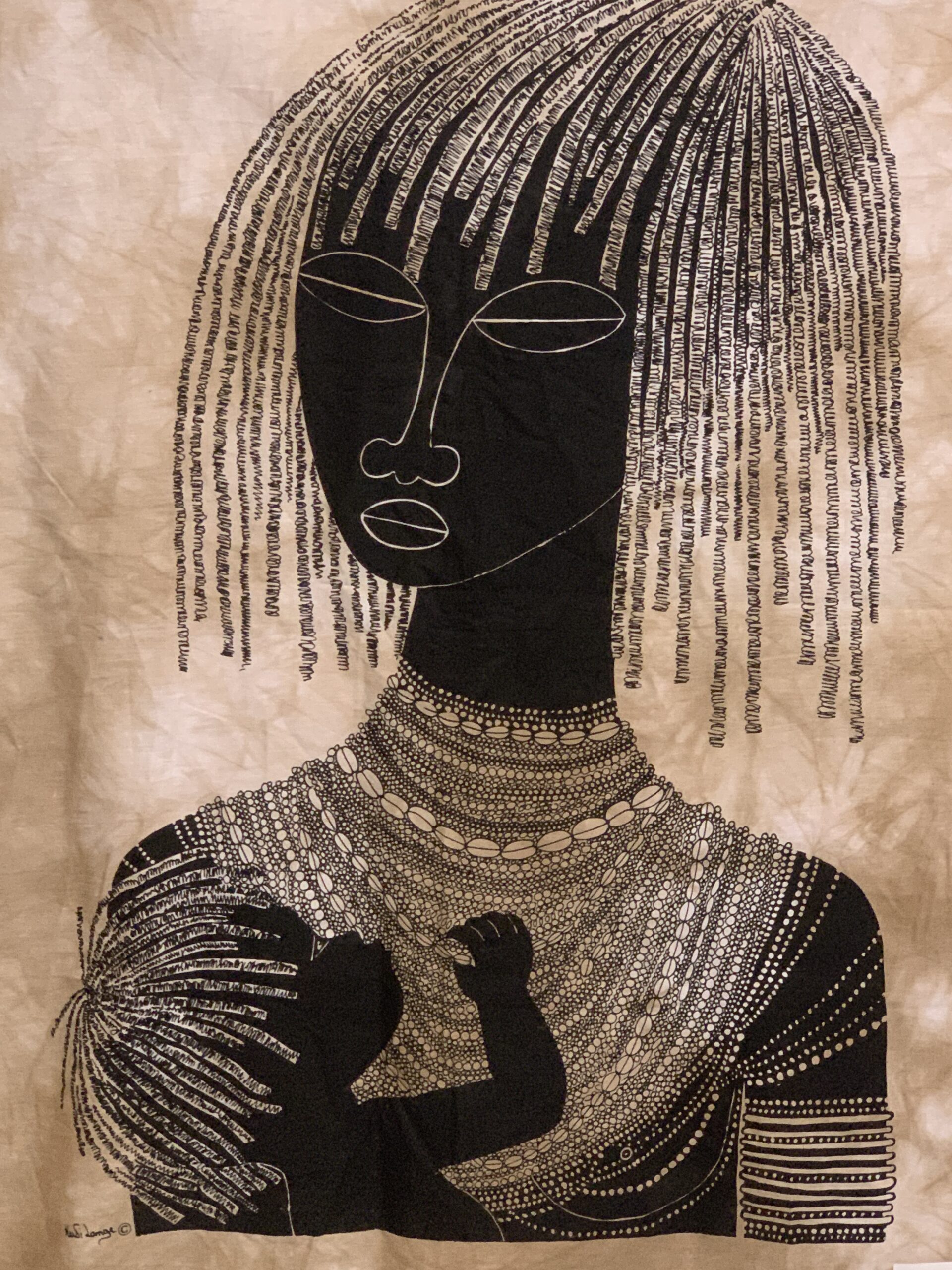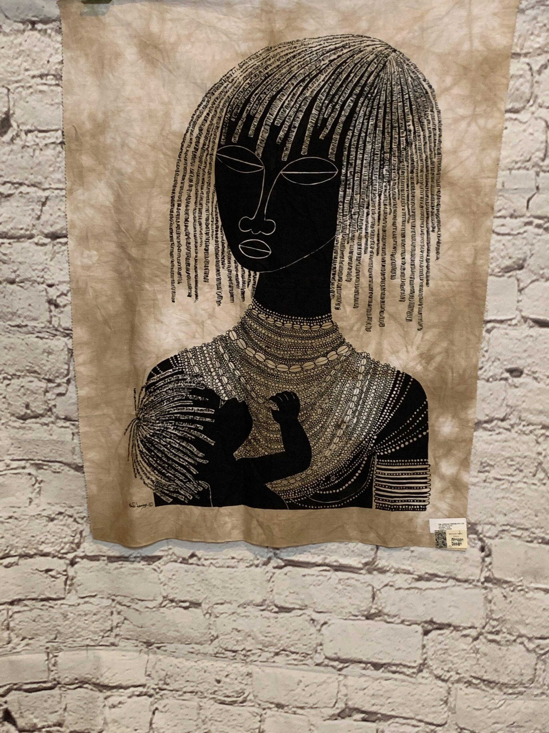 Ideal for art enthusiasts and collectors, this piece offers a glimpse into the rich cultural heritage of East Africa. Its vibrant colors and intricate design make it a standout item, reflecting the beauty and diversity of the region’s landscapes and traditions. Whether displayed in a living space or as part of a curated art collection, the “Mother with Child” batik serves as a testament to the enduring appeal of traditional African art forms.