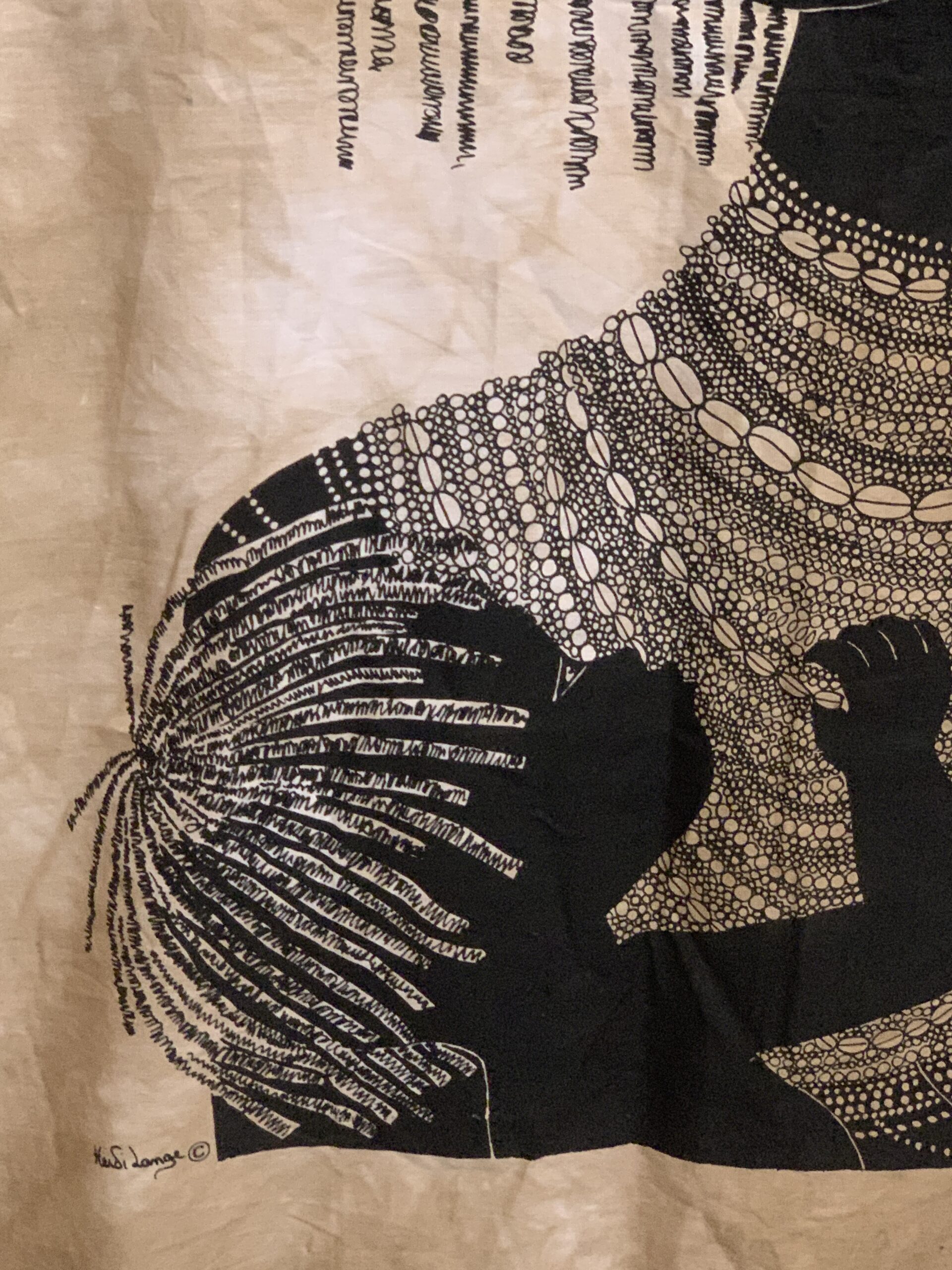 The “Mother with Child” batik, designed by renowned artist Heidi Lange, measures 89×67 centimeters and exemplifies the intricate artistry characteristic of East African batik prints. Heidi Lange, celebrated for her vibrant and detailed designs, has created a piece that captures the essence of maternal love and the close bond between mother and child, reflecting the rich cultural heritage of the region.