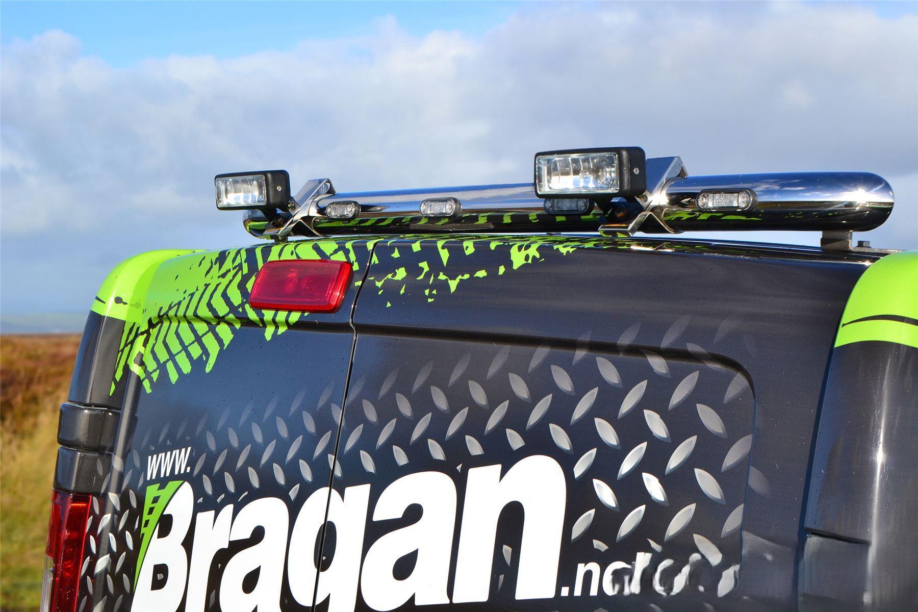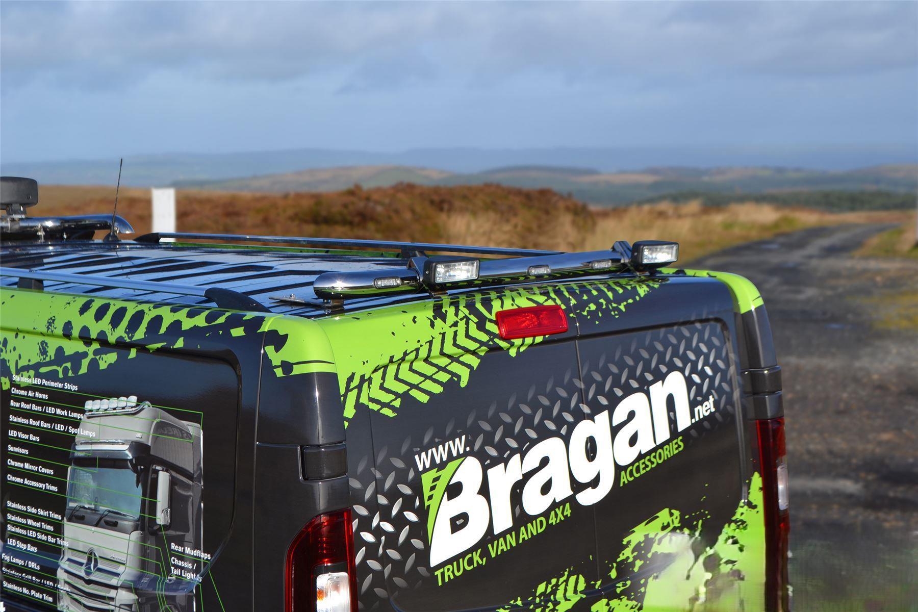 High quality Nissan Primastar(2022 - present model) stainless steel rear roof bar with 2x Lamps and 5x LEDs. This top-of-the-range bar will have your vehicle looking top spec at a fraction of the cost of the genuine items but with the same high quality.