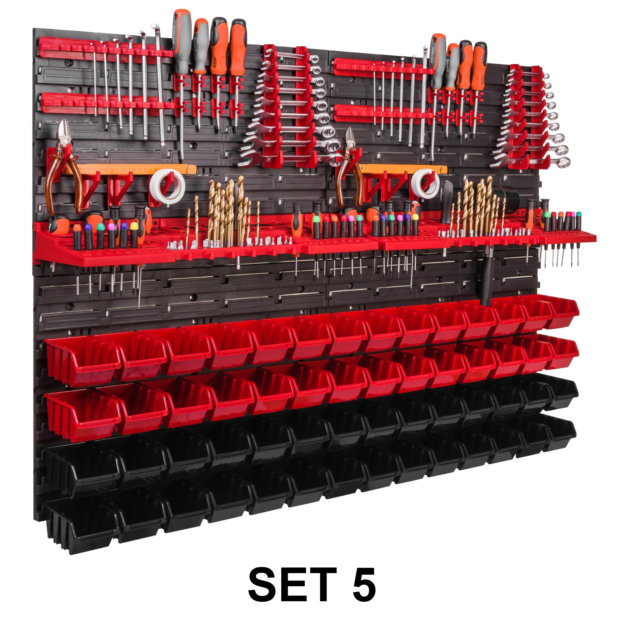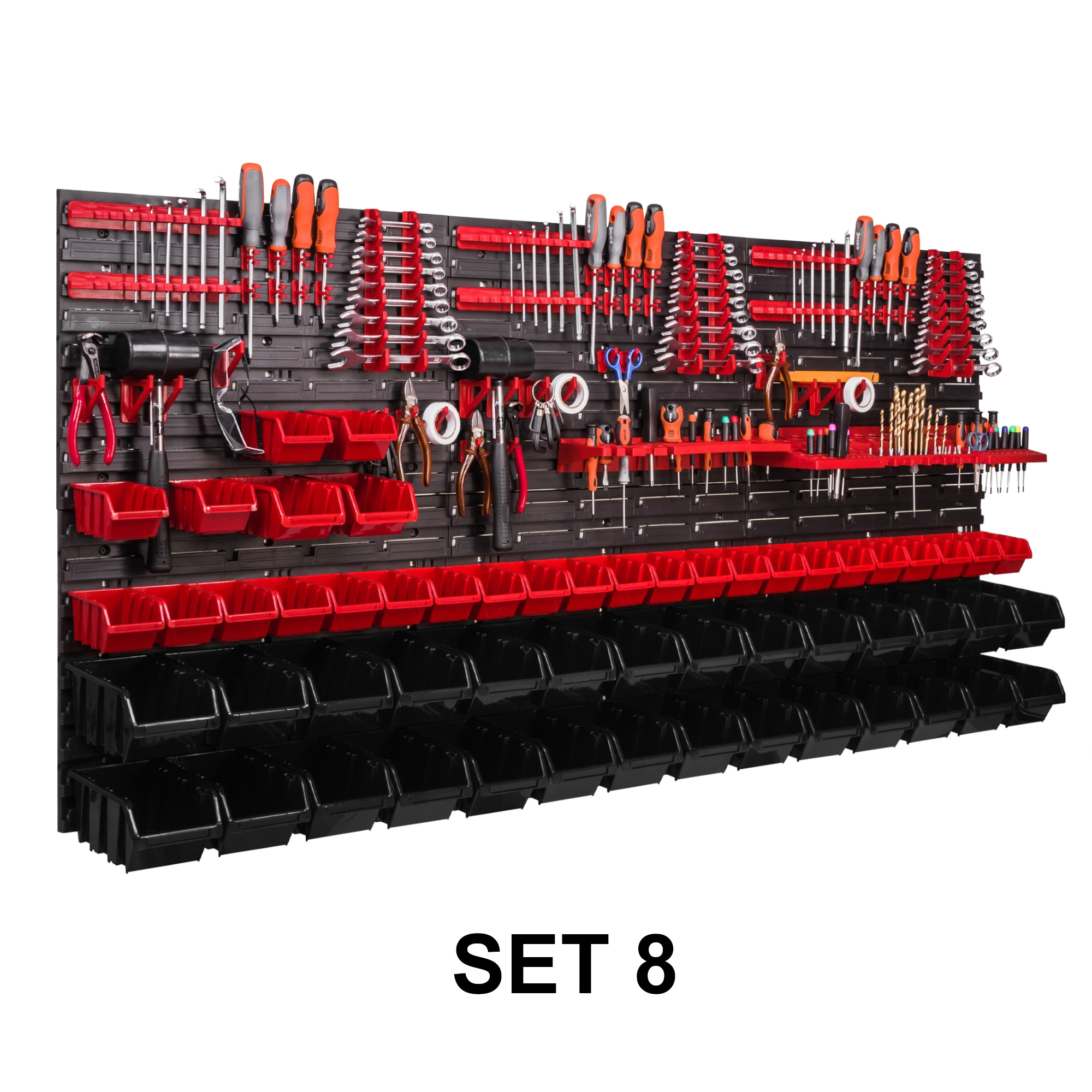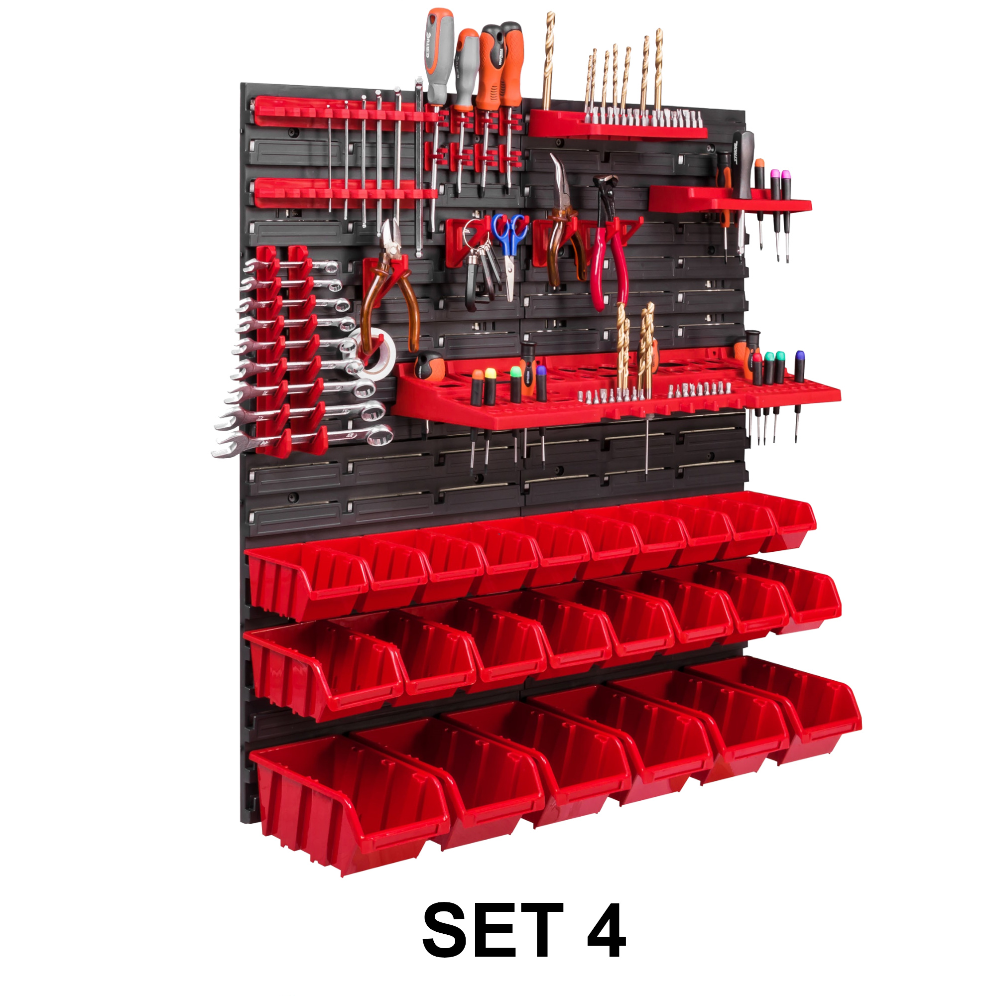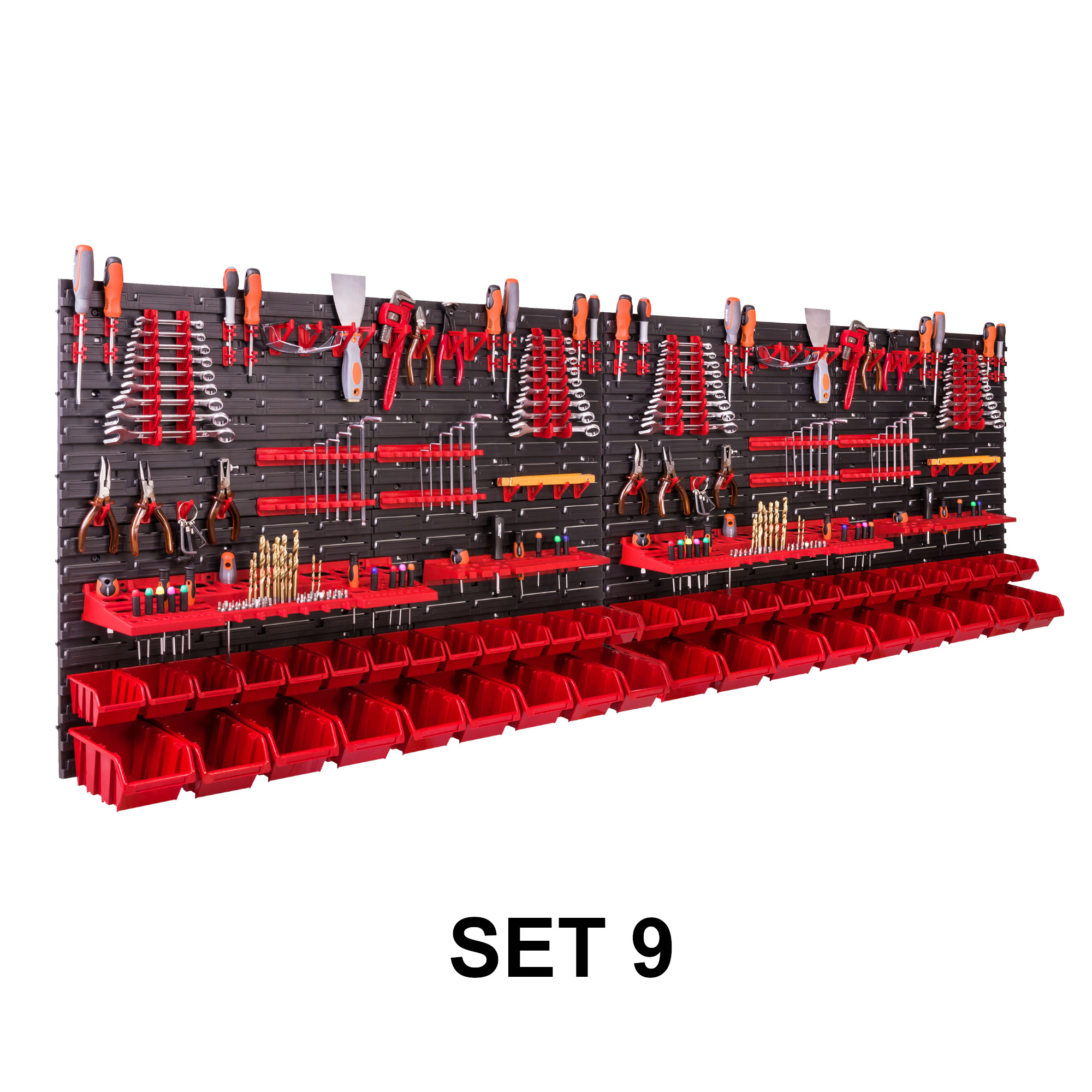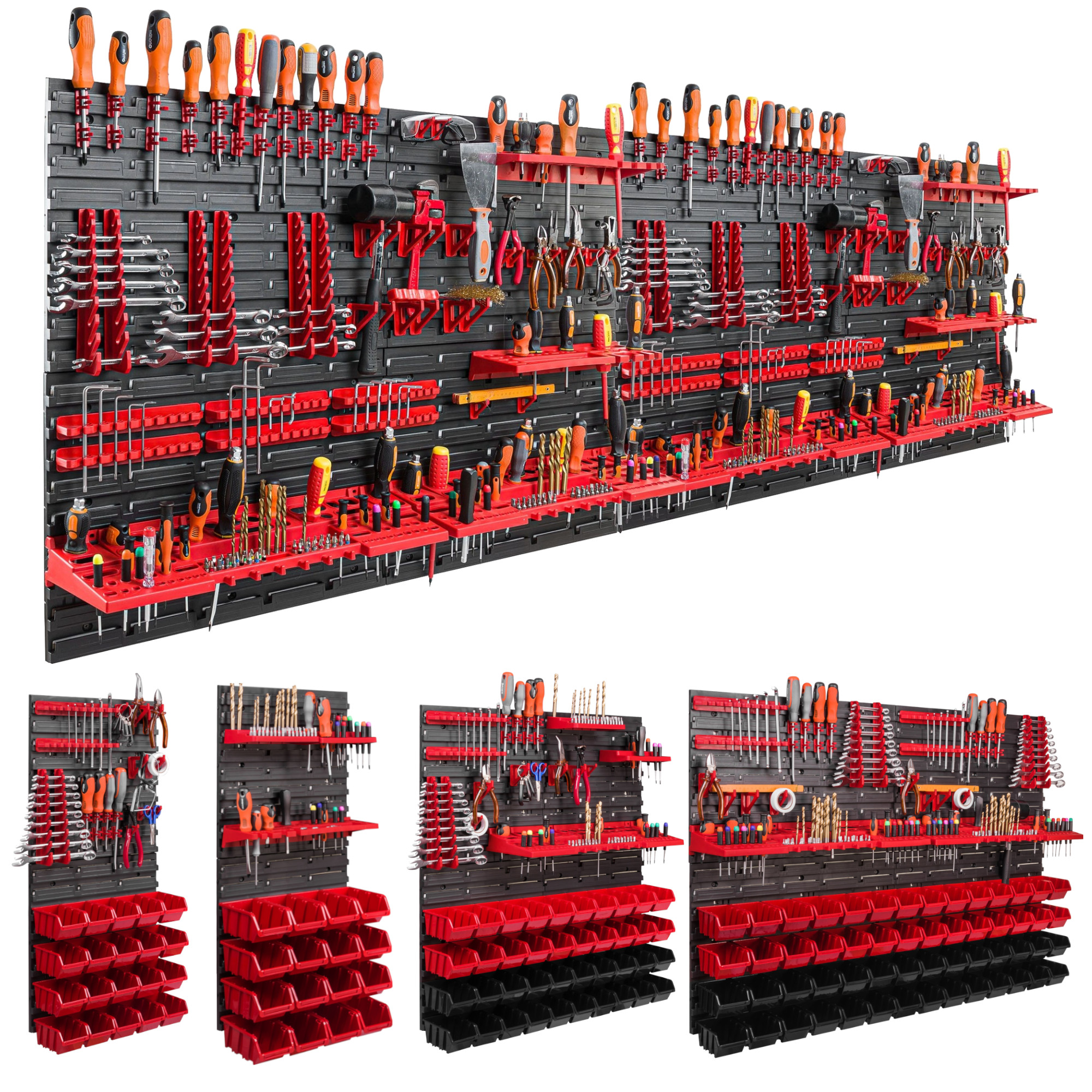 4 x Schraubenschlüsselablage/ 8x Klemmleisten / 16 x Werkzeughaken M Klein / 16 x Werkzeughaken XXL Groß / 32x Werkzeugklemme