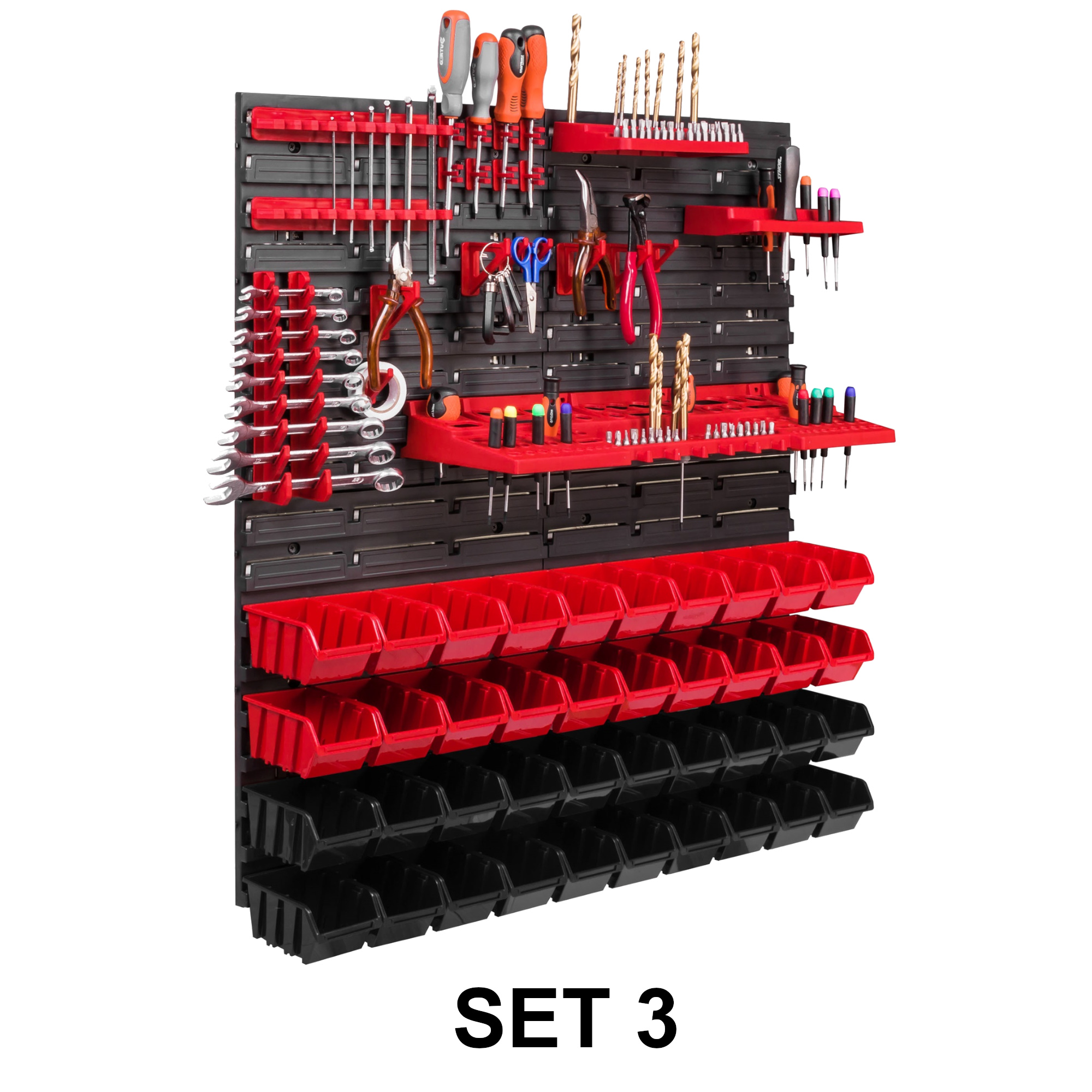 3 x Schraubenschlüsselablage/ 6 x Klemmleisten /12x Werkzeughaken M Klein / 12x Werkzeughaken XXL Groß / 24 x Werkzeugklemme