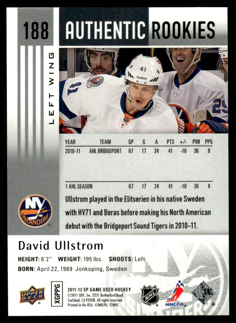 | 2011-12 SP GAME USED AUTHENTIC ROOKIES DAVID ULLSTROM /999 #188 | ||||||||||||||||