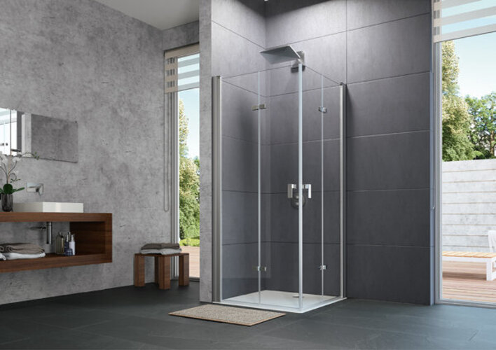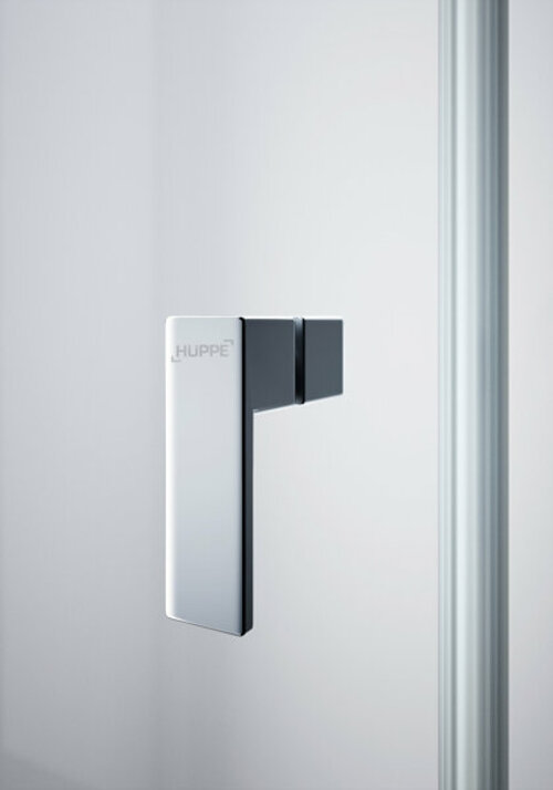 Porte pliante battante pure design HÜPPE, fixation côté droit, largeur 700 mm, hauteur 1900 mm, montage sur receveur de douche et carrelage, 8P0901087321, cabine de douche : couleur profil argent mat verre ESG transparent