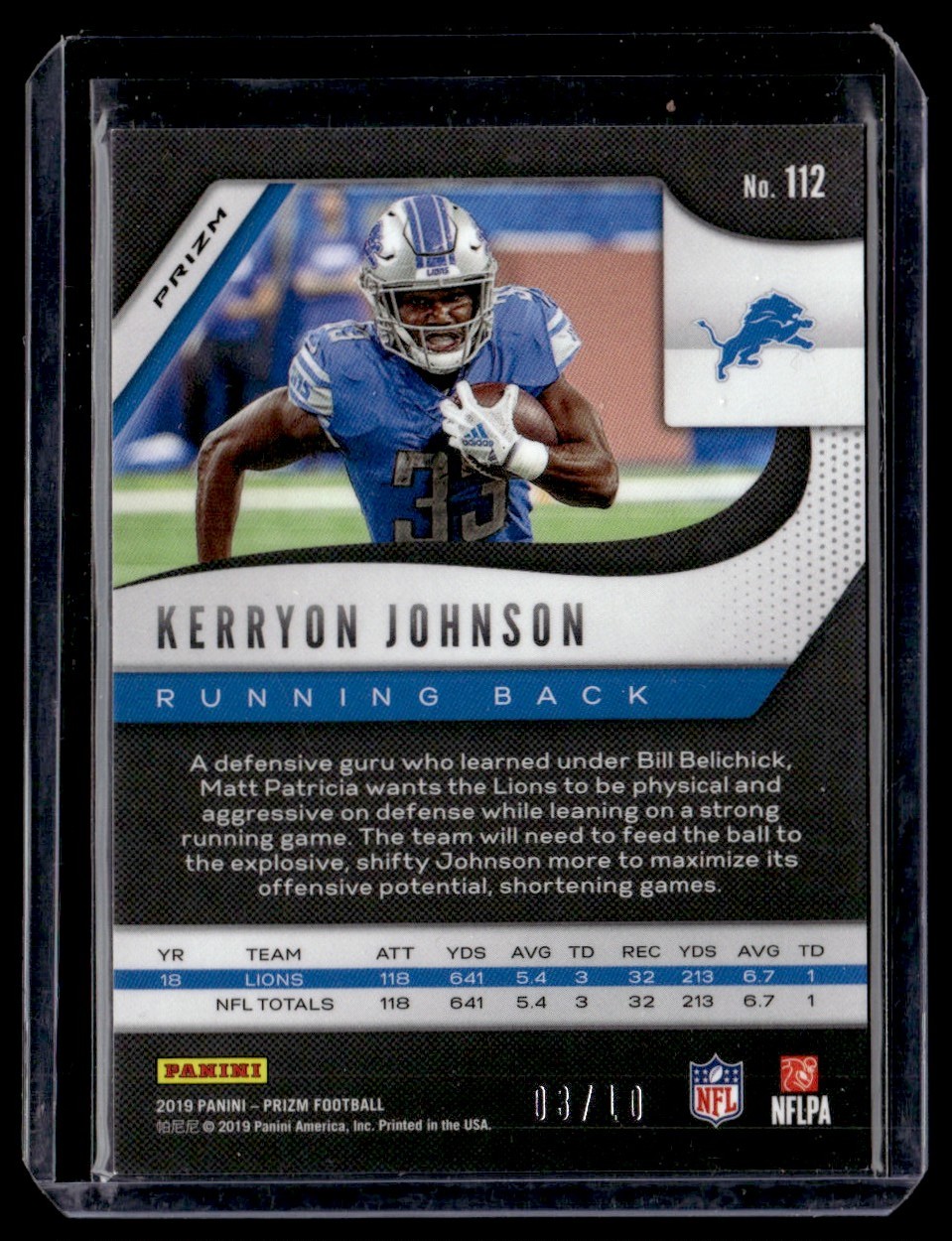 2019 Panini Prizm Blue Shimmer Kerryon Johnson 03/10 #112