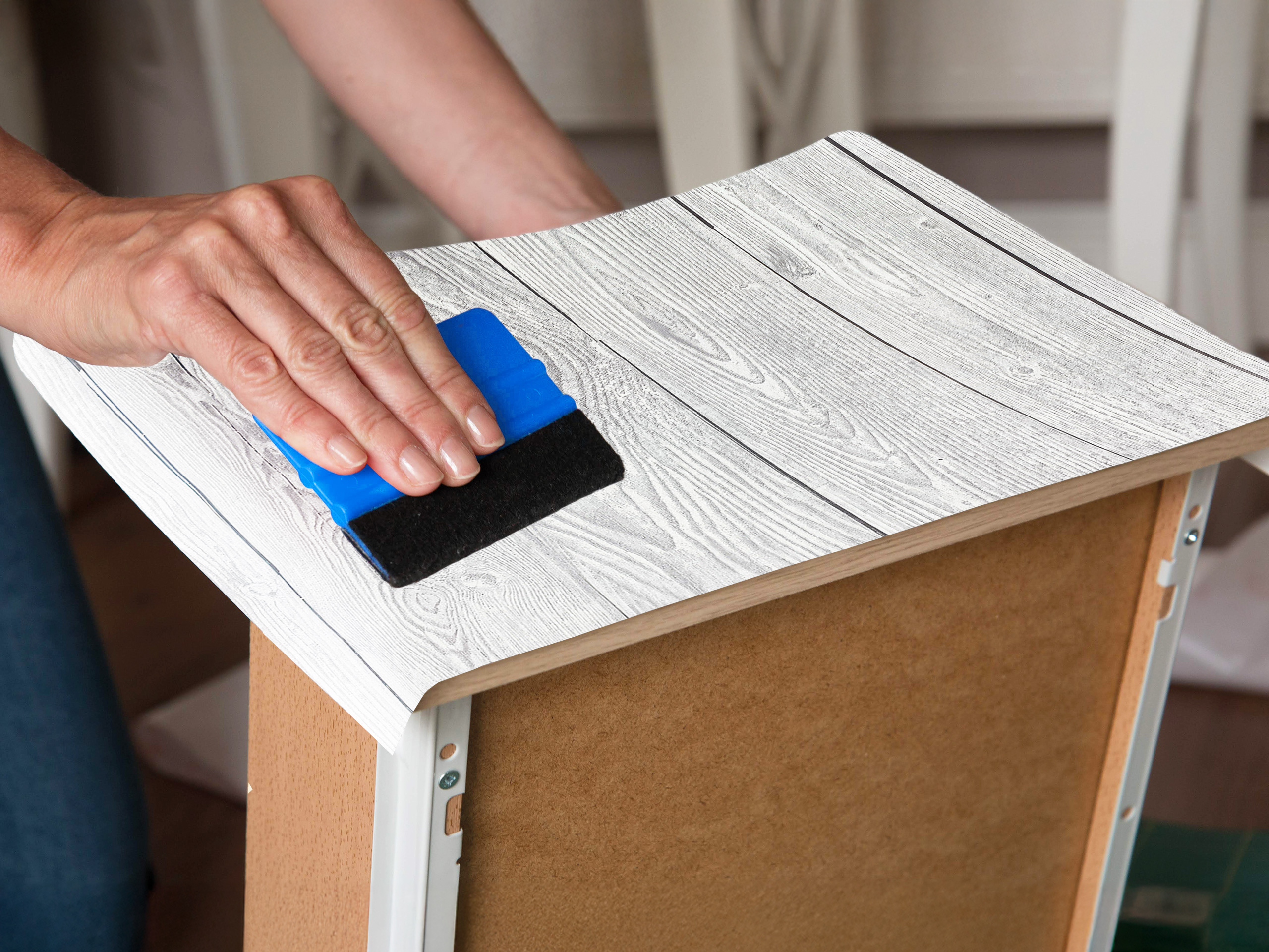 Platzieren Sie die freigelegte Folie auf dem Möbelstück.