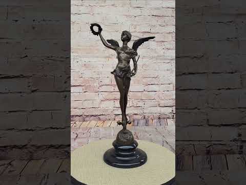 Handmade using the traditional lost wax method, this sculpture ensures exceptional quality and durability. The rich brown patina finish enhances the depth and texture of the bronze, highlighting the intricate details of the angel's wings and flowing robes. Mounted on a black marble base, the sculpture offers a striking contrast that accentuates its classical aesthetic.