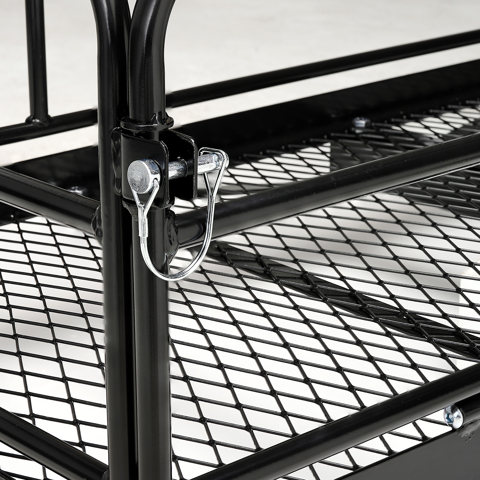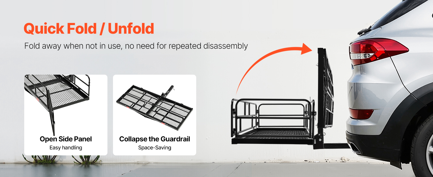 - Foldable: When you don't use our hitch cargo carrier,, the luggage frame can be completely flattened and folded 90°by adjusting the pins and latches, lowering the need for repeated disassembly and taking up no extra space.