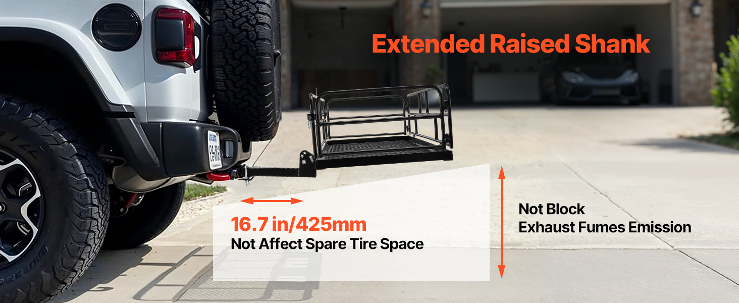 Our hitch cargo carrier offers extra-large storage without taking up space in your car and can hold up to 500lbs. Made of heavy-duty steel, the hitch stabilizer enhances stability, avoiding jiggle or deformation while driving, so you can transport your items with confidence.