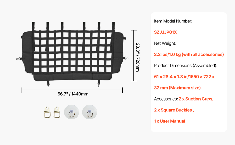 Convenient Installation: This dog car barrier is incredibly easy to install, requiring no vehicle modifications or drilling. Equipped with 2 suction cups and 2 square buckles, it can be securely mounted in just minutes.