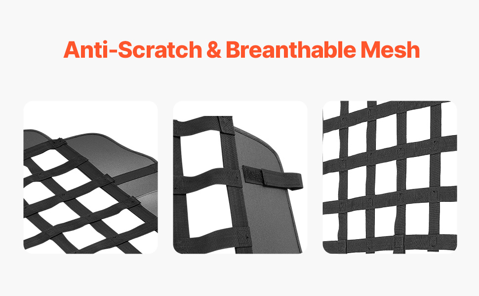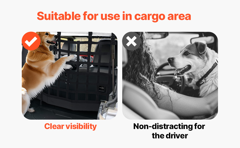 Scratch-Resistant & Breathable Mesh: Made with woven mesh, this vehicle pet barrier withstands scratches, tears, and chewing from pets. The breathable design allows air conditioning and heating to pass through easily. The non-stick material is also easy to clean, ensuring a hassle-free experience.
