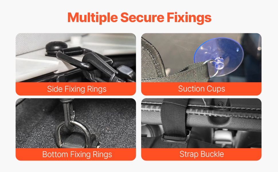 Equipped with square buckles and suction cups, our dog car barrier is quick to set up without any modifications to your vehicle. It provides an instant security barrier for you and your pet in no time.