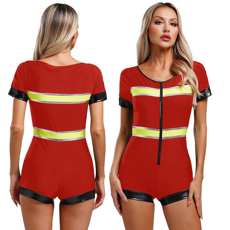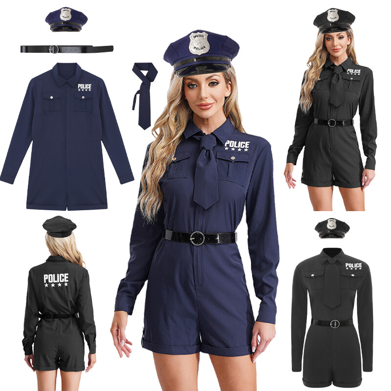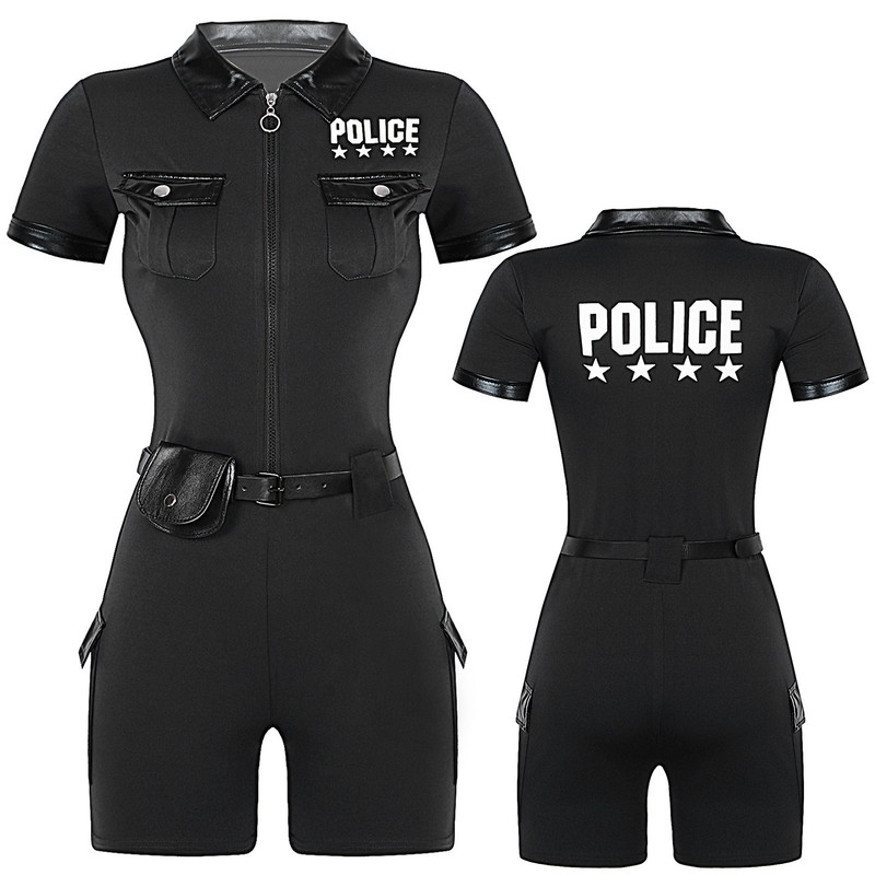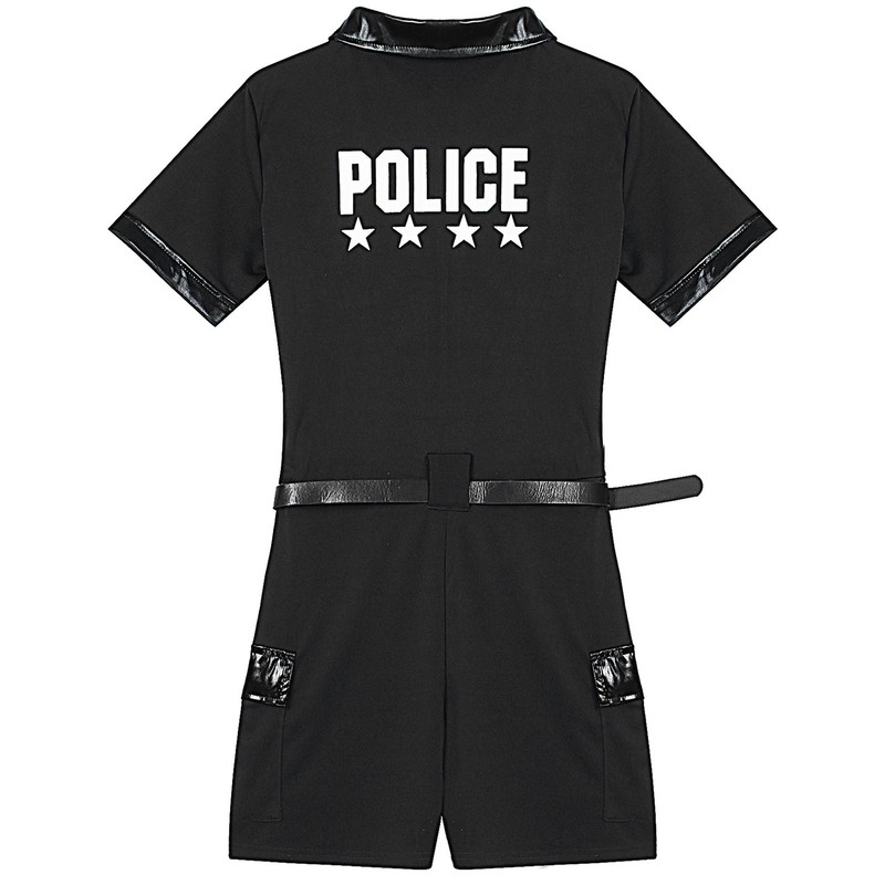 Policewomen outfit includes romper, faux leather belt and purse, 3-piece a set.
