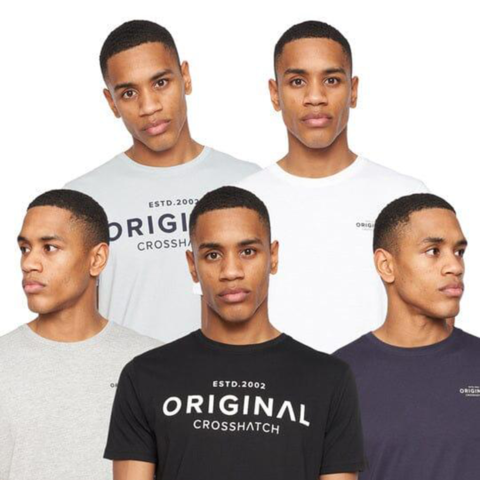 Unveil effortless sophistication with this set of five men's cotton tees from Crosshatch. Each tee is crafted from 100% cotton for ultimate comfort, featuring a seamlessly integrated inner back neck tape in complementary fabric. A striking single-colour soft-touch print on the front adds a touch of understated charm to your wardrobe. Perfect for elevating your everyday style with both comfort and subtle flair.