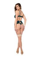 Jewel-inspired richness in three eyelash lace pieces. The underwire top and garter belt create a complete set as precious as the tones that inspire it.