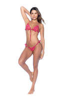 Fun and feminine at the beach. The ruffle front-tie top and eyelet print make this bikini a charming, playful choice for any summer day.