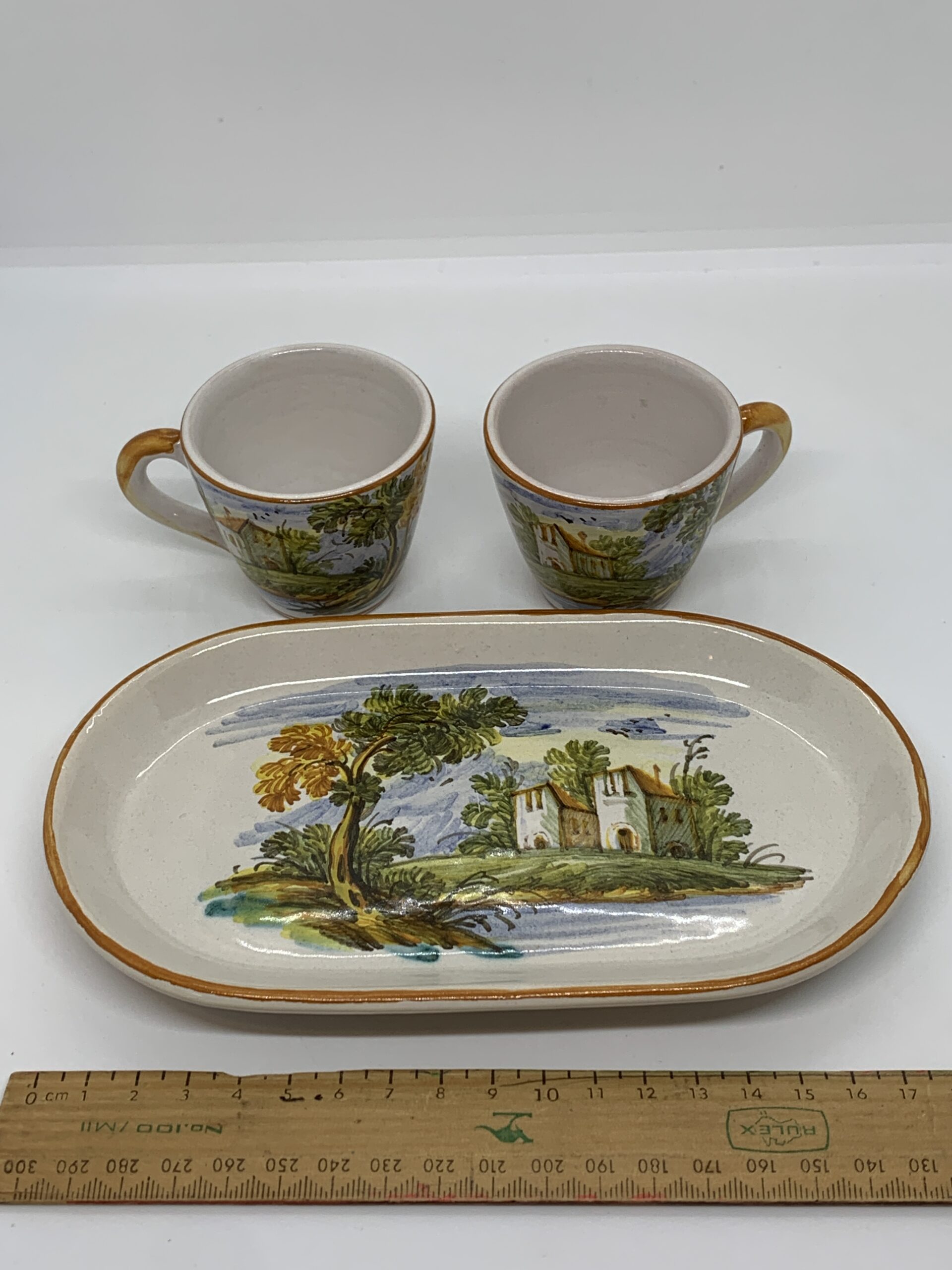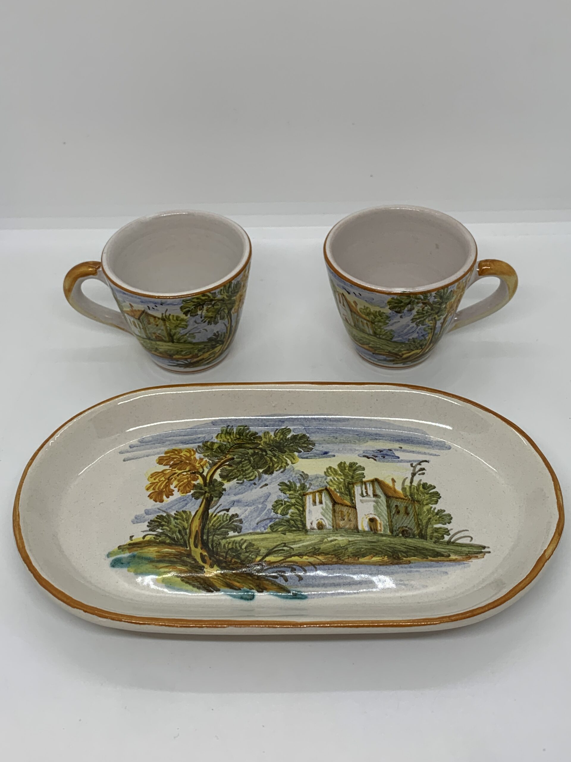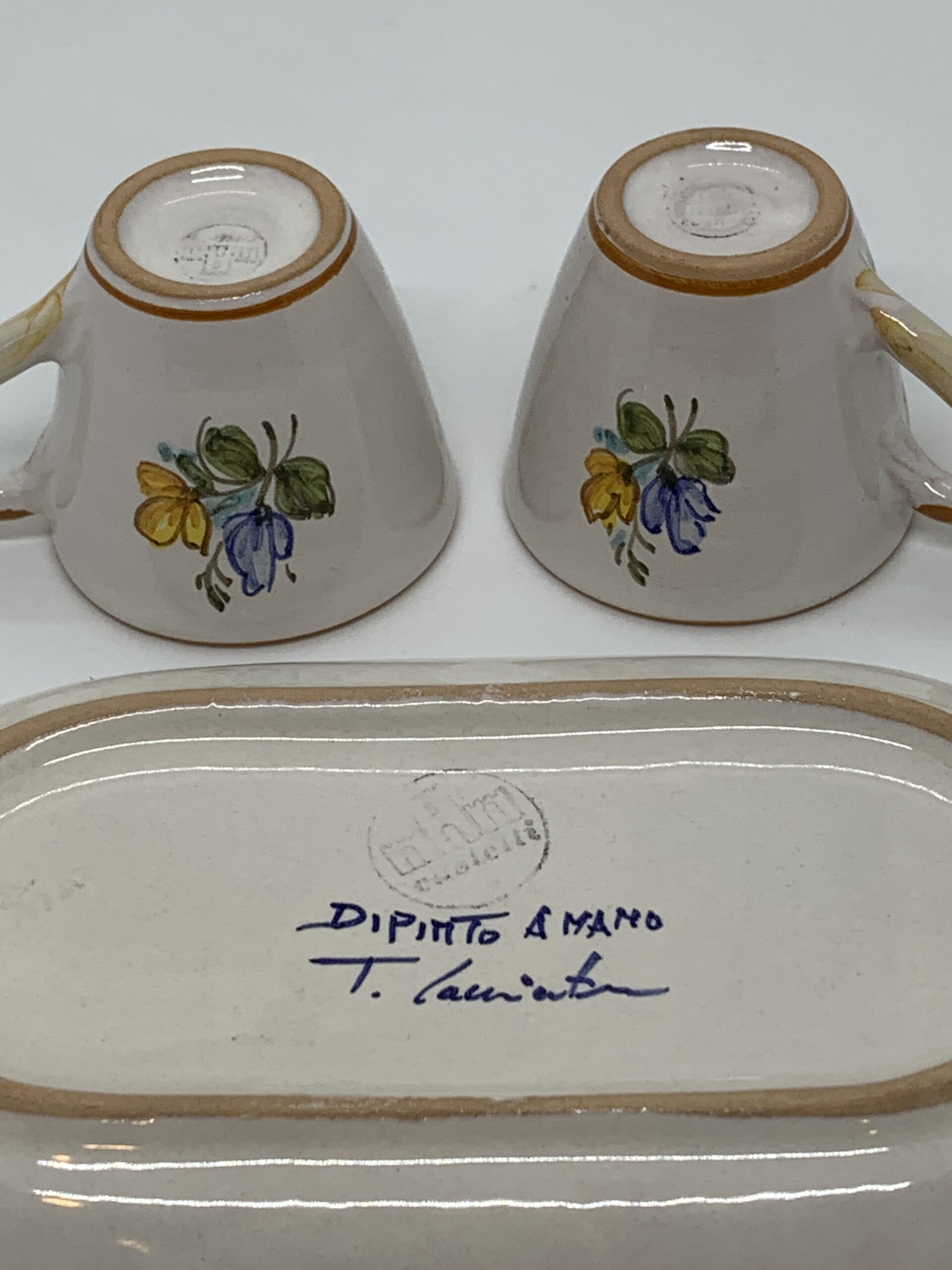 Dipinto A Mano Italian Pottery 3 piece Coffee Set - signed to base