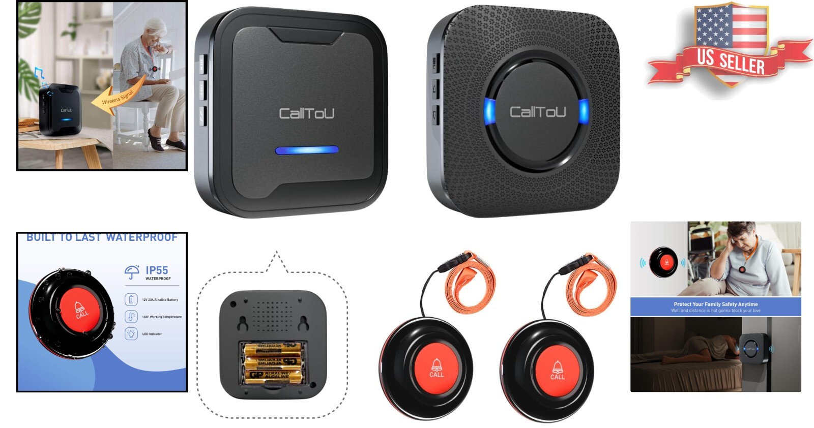 3-Receiver Caregiver Alert System with Adjustable Ringtones & Waterproof Buttons