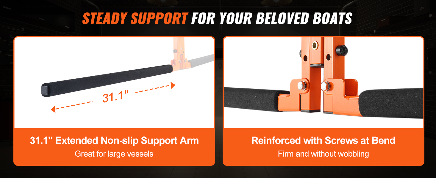 Anti-scratch Sleeves: Upgraded thick and lengthened support arm, support arm length of 31.1 inch/790mm, the kayak ceiling storage can carry wide kayaks, add anti-slip waterproof sleeves, soft support kayak without causing damage and scratch, and not easy to slip.