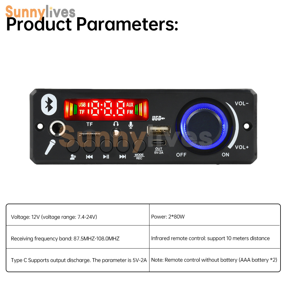 5. Powerful amplifier, shocking sound: can be connected to two 80W speakers at the same time, to provide 2 * 80W of powerful output power, bringing shocking bass and clear mid-high frequency performance