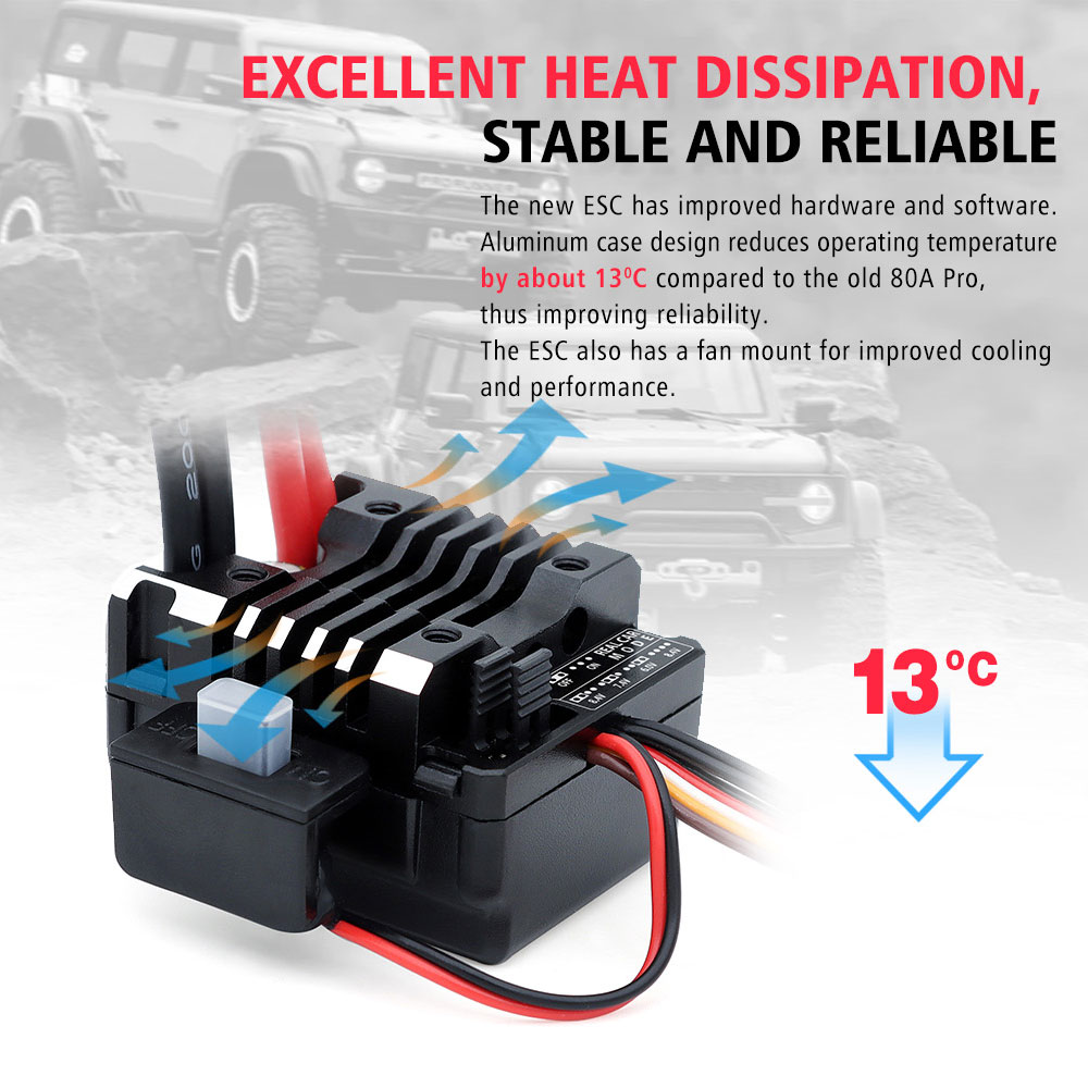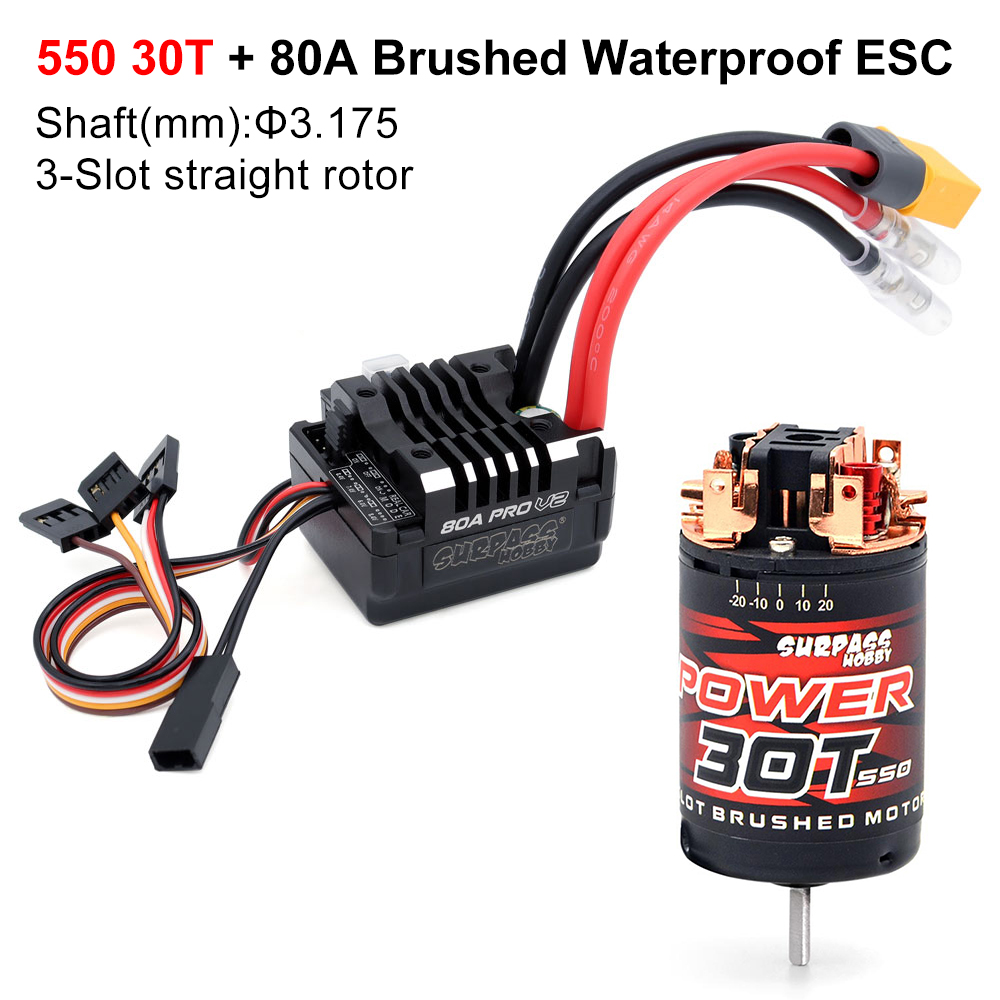 SURPASS HOBBY 80A ESC And 550 (3-Slot)Motor Combo 12T 14T 20T 25T 30T 35T Speed Controller For 1/10 Crawler Car 6.0V/7.4V/8.4V BEC