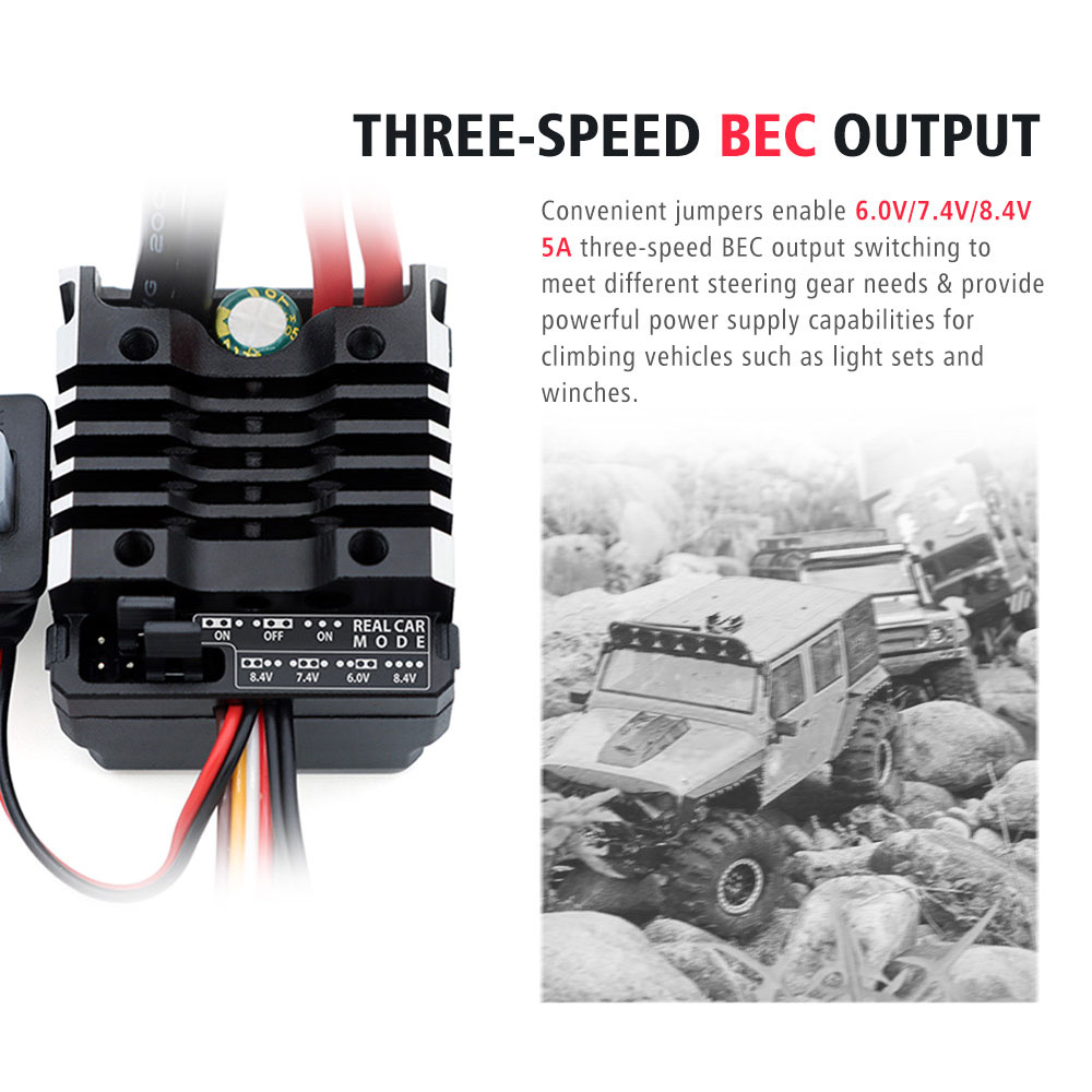 BEC Output: 6.0V/7.4V/8.4V switch able and 5A(switch mode)