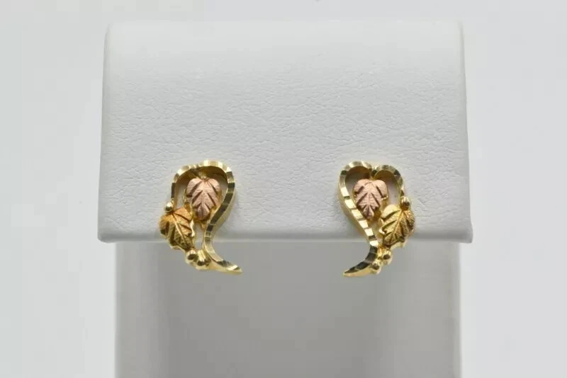 TBGoods presents a pair of previously loved 10K Multi-Toned Diamond-Cut Black Hills Gold Leaf Earrings. This piece has an estimated retail replacement value of $400!