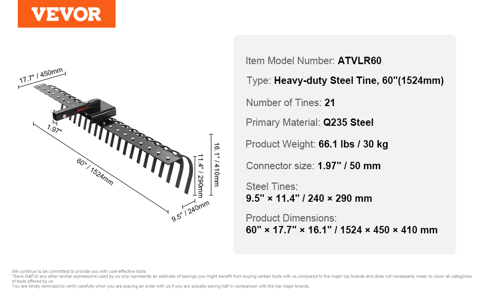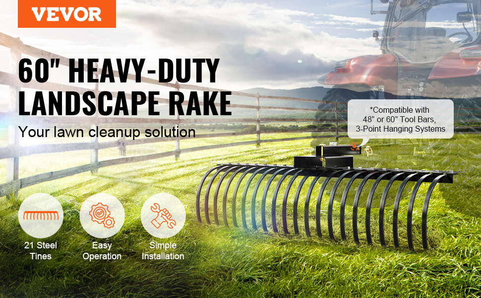 VEVOR Tow-behind Landscape Rake : Your Essential Lawn Cleaning Helper!
