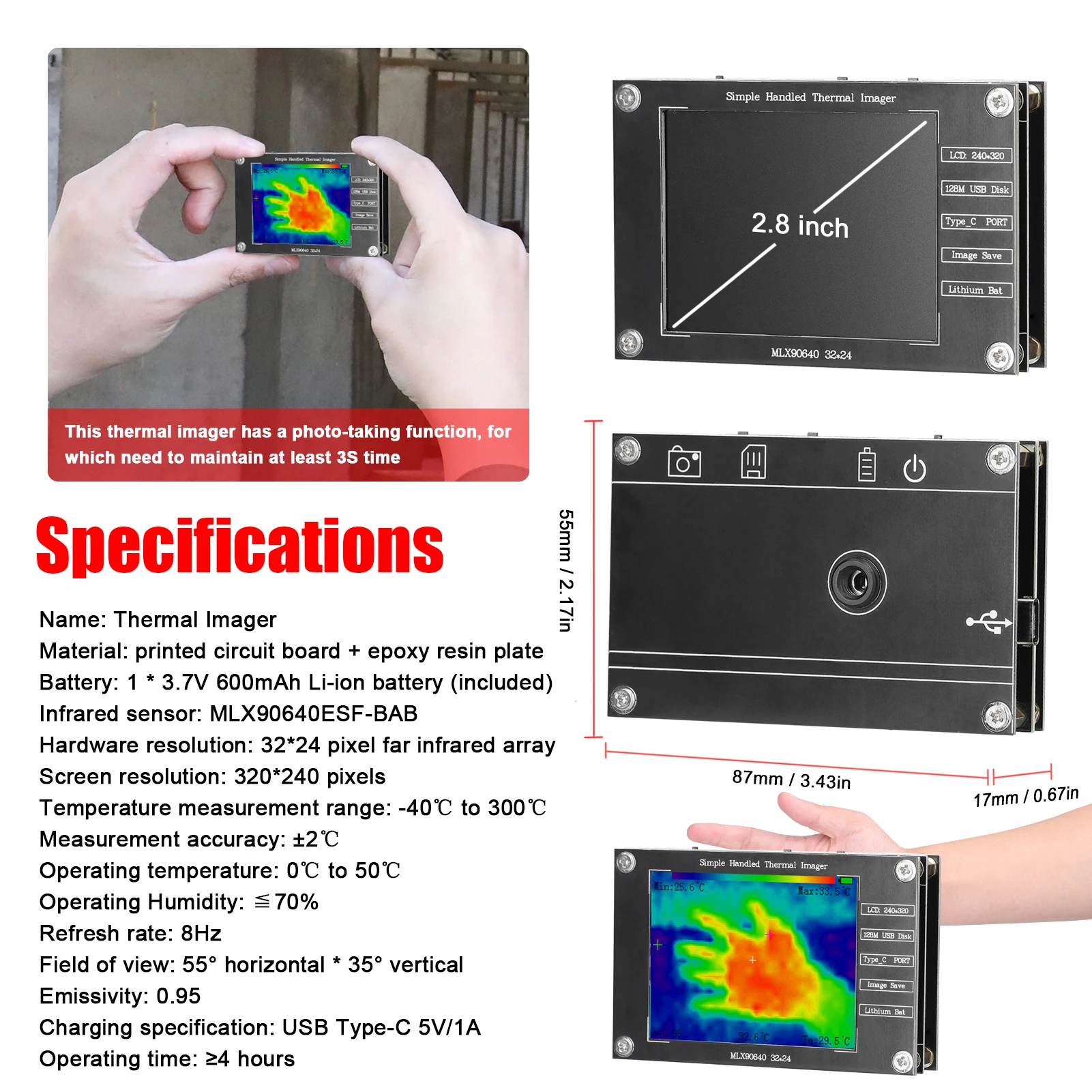 MLX90640 2.8-inch TFT display handheld infrared thermal imager Measurement of -40~+300℃